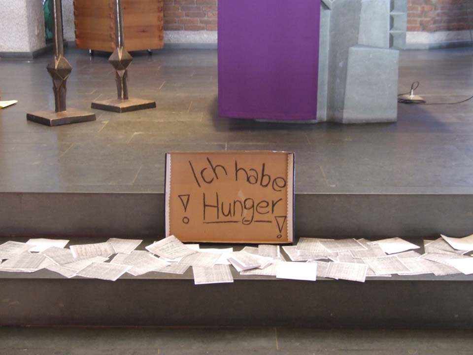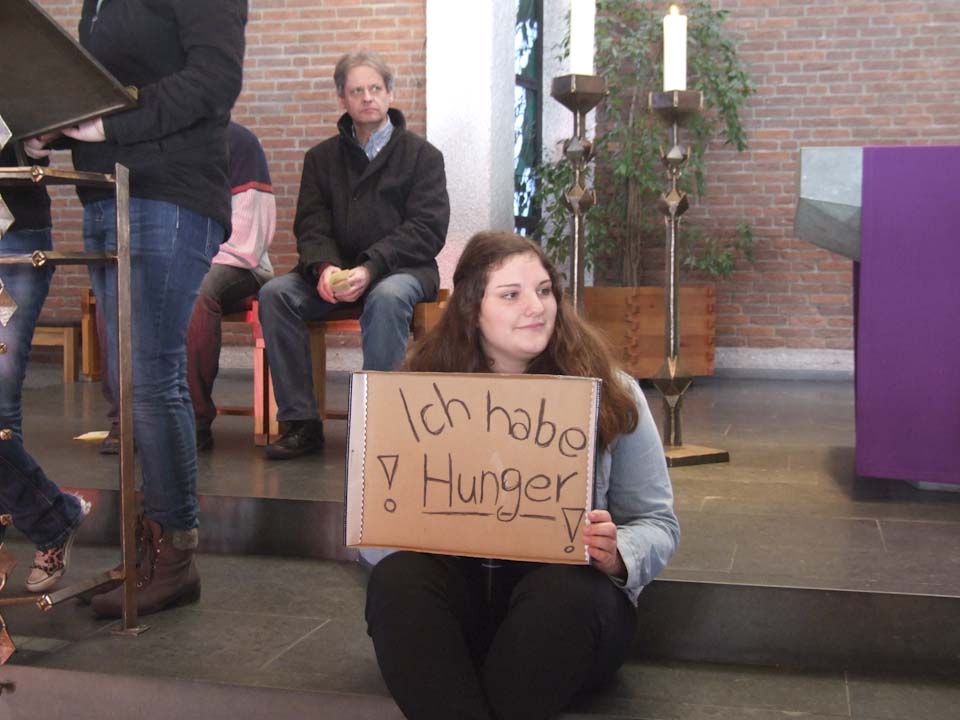 Am 4. März, dem Tag der seligen Namenspatronin der Schule, findet traditionell ein Projekttag am Berufskolleg statt. Das Vorbereitungsteam aus der Lehrer- und Schülerschaft hatte sich diesmal das Thema „Hunger“ ausgesucht.