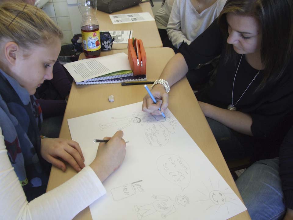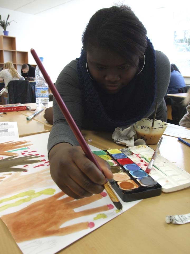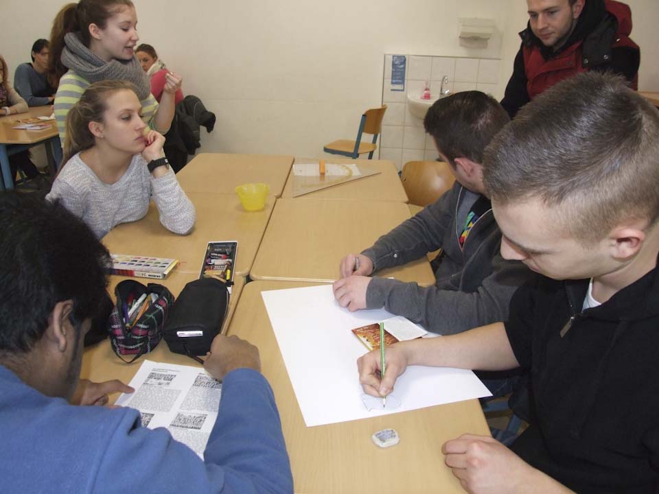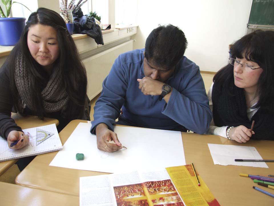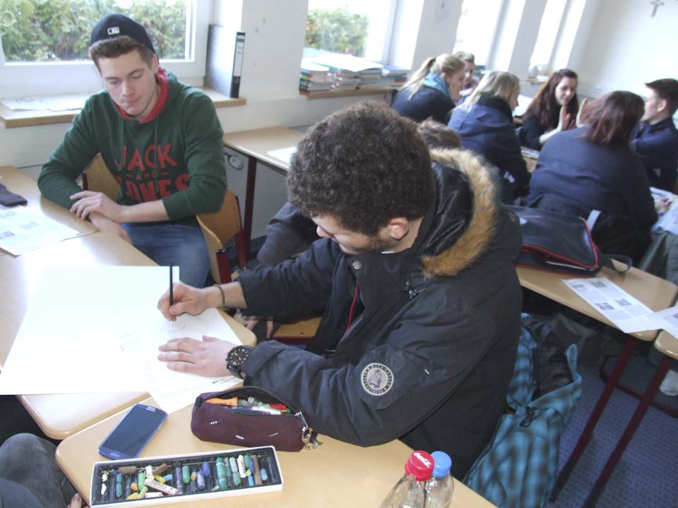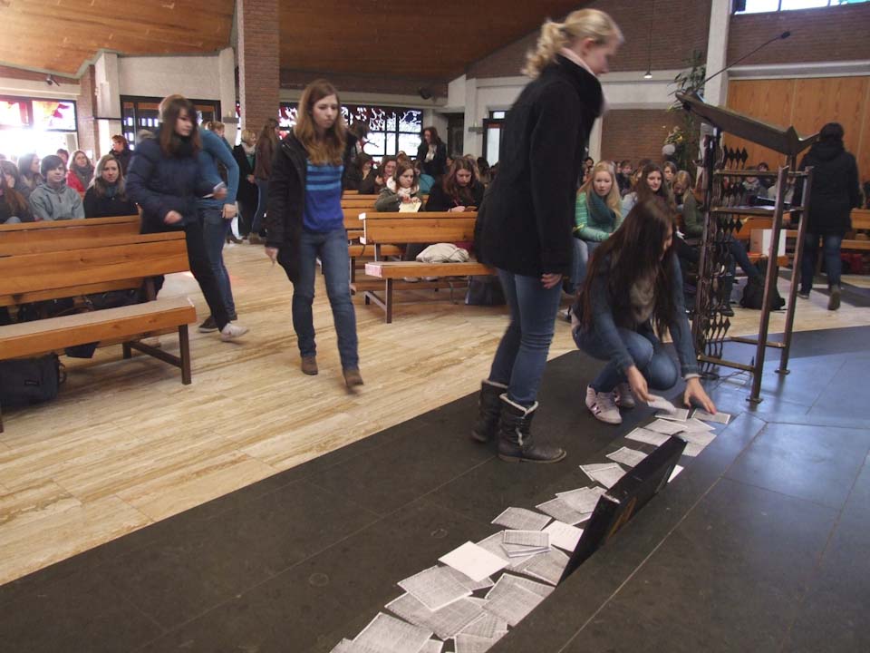 Im Anschluss wurden die Klassen aufgeteilt: Die eine Hälfte hörte einen Vortrag von Schwester Schwester Maria Elisabeth Goldmann, Schwester Klara Maria Breuer und Winfried Meilwes, Referent der Missionszentrale und Leiter der Projektentwicklung, über die Arbeit des Ordens der Schwestern der Heiligen Maria Magdalena Postel, der auch Schulträger ist. Die andere Hälfte konnte sich aussuchen, ob sie entweder ein Miserior-Hungertuch malte oder einen Statiosngang zu Orten des Hungers in Menden unternahm. Danach wurde getauscht, sodass alle Schülerinnen und Schüler den Vortrag gehört sowie einen kreativen oder meditativen Teil absolviert haben.