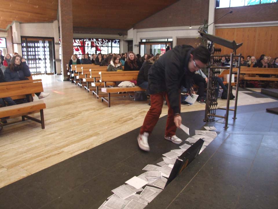 Los ging es morgens mit einem Gottesdienst in der St.-Paulus-Kirche, der im Wesentlichen von den Lehrern Matthias Menke (Schulseelsorger), Matthias Schneider und Gerd Mengelkamp sowie Schülern des Beruflichen Gymnasiums getragen wurde. Ein Rollenspiel von Schülerinnen verdeutlichte die Problematik, mit Zetteln konnte jeder Gottesdienstbesucher seine eigenen Gedanken einbringen. Musikalisch gab es bei dem wunderschön vom AHR-Chor vorgetragenen „Holy, Holy, Holy“ eine Premiere bei einem Placida-Schulgottesdienst: Schülersprecherin Ayleen Schneider gab eine Rapp-Einlage.