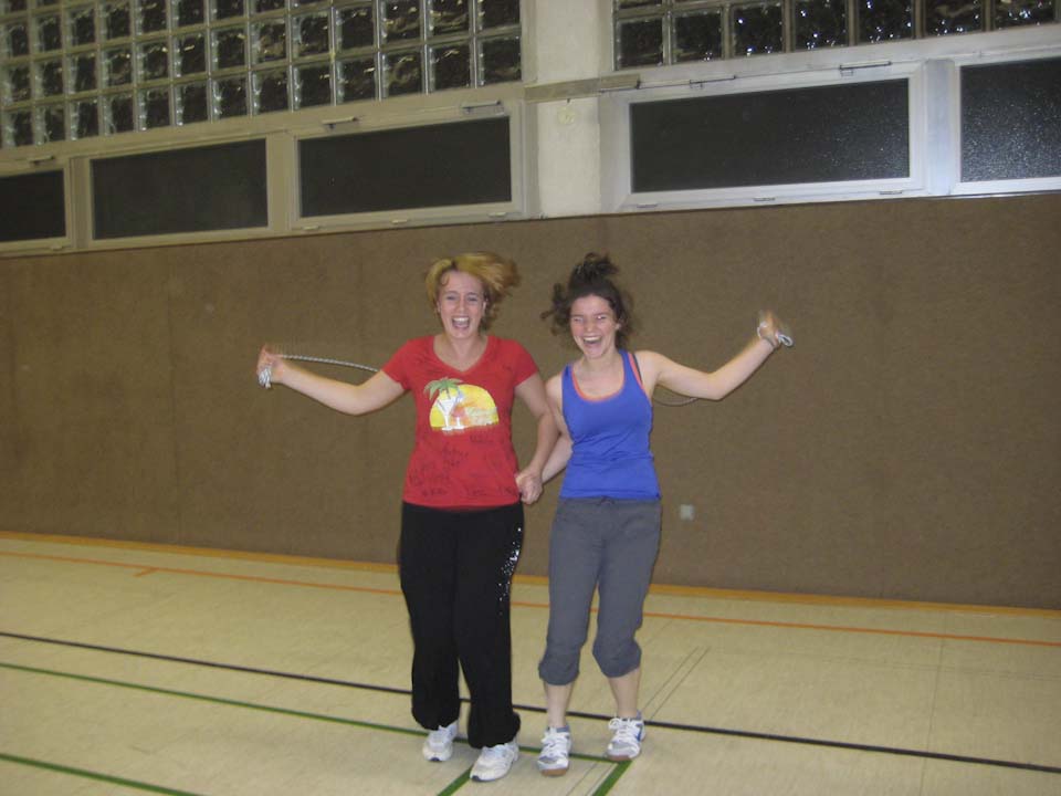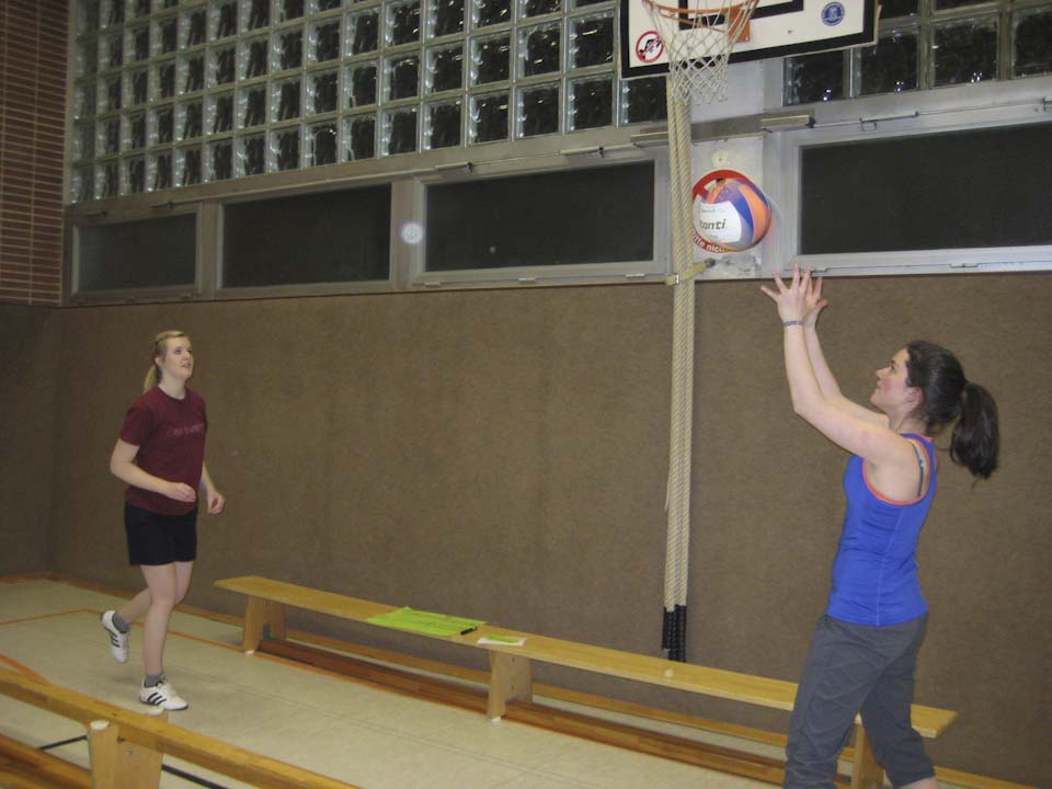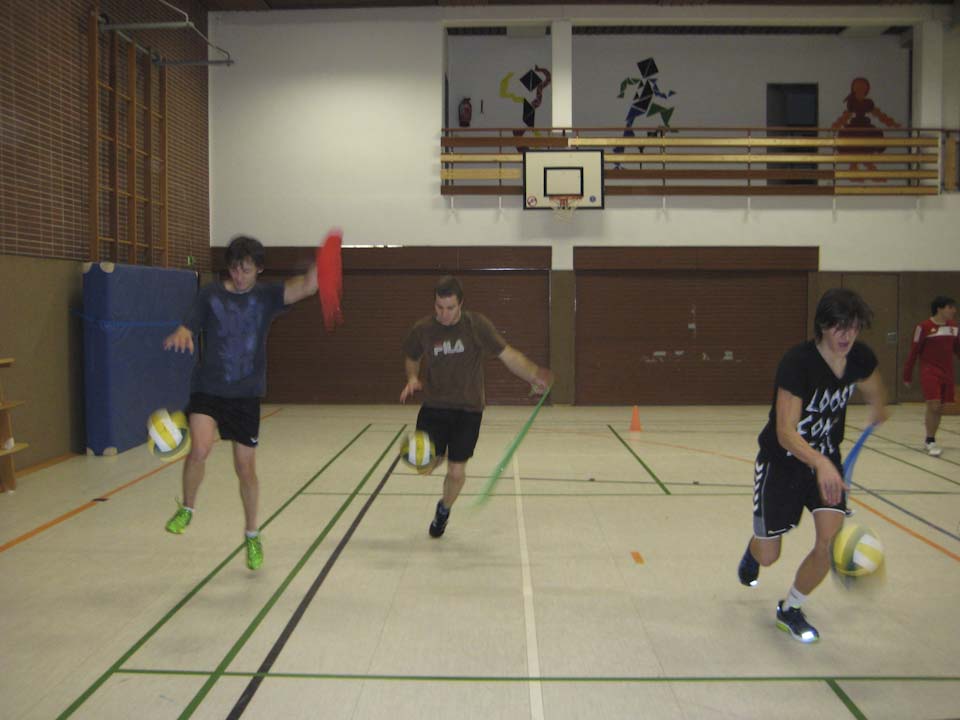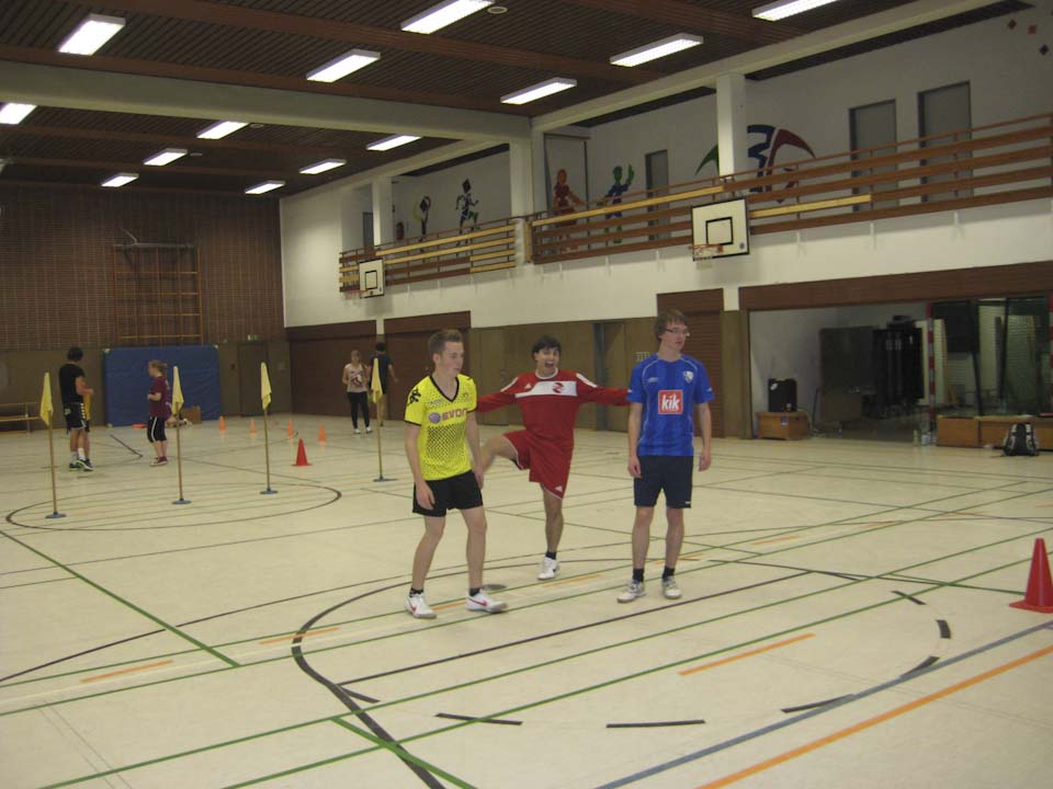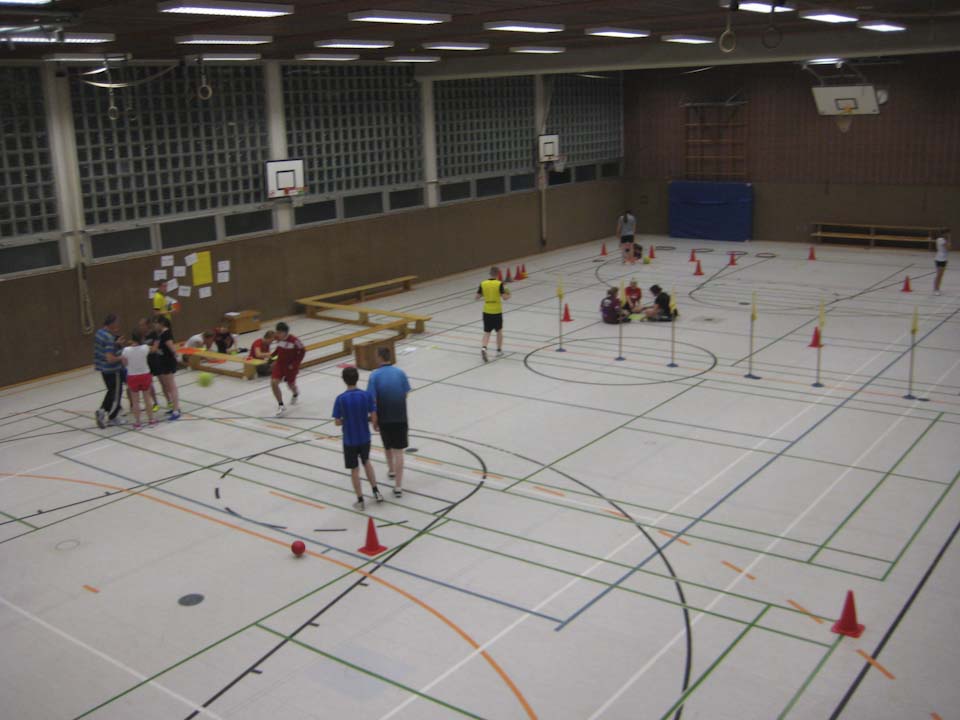 Am Samstag gab es ein gemeinsames Frühstück, dann mussten auch die Müdesten wieder arbeiten und lernen – diesmal zum Thema „Wie baue ich eine Übungsstunde auf?“ am Beispiel der Sportart Hockey.