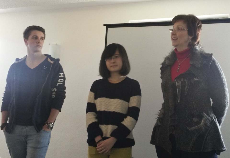 Rebecca, eine chinesische Austauschschülerin die zurzeit bei der Familie von Lehrerin Ingrid Betken zu Gast ist, berichtete zudem eindrucksvoll von ihren Erfahrungen aus Deutschland. „Schule in Deutschland ist wie Urlaub“, beschrieb sie einen ihrer ersten Eindrücke vom Schulleben in Deutschland. In China dauert ein Schultag von 7 bis 19 Uhr (vor einiger Zeit sogar bis 22 Uhr!) mit zweistündiger Mittagspause. In einer Klasse sind bis zu 65 Schüler.