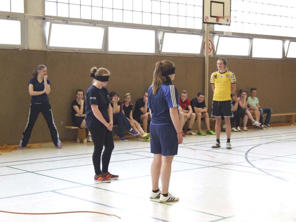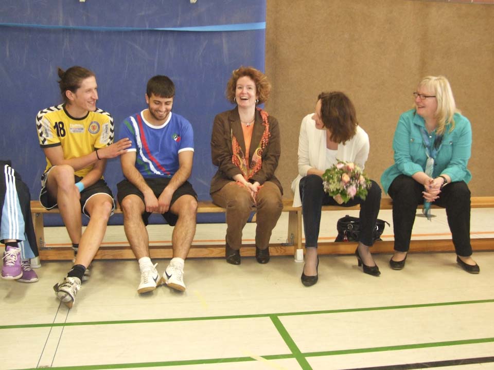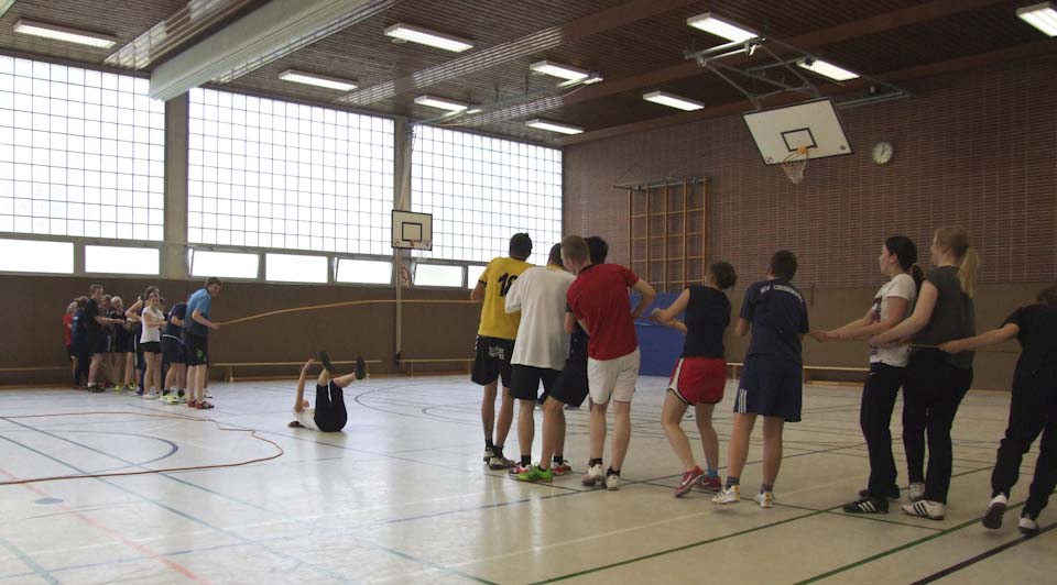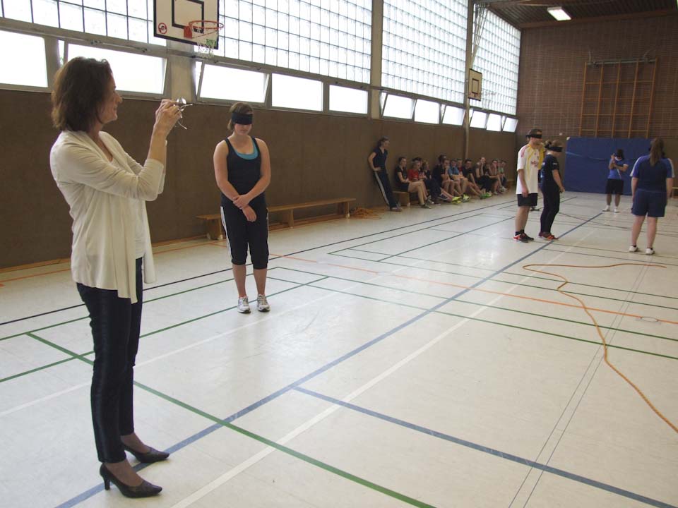 Die Schülerinnen und Schüler haben nun das Basismodul des Lehrganges absolviert und beginnen mit dem Aufbaumodul. Dagmar Freitag informierte sich über Fortschritte und Pläne. Anlässlich des Besuchs der Bundestagsabgeordneten zeigten die jungen Sportler unter der Leitung von Sportlehrerin Inga Gerlings eine Sportstunde zum Thema „Kommunikation/Zusammenarbeit im Team – Übungsleiter-Verhalten“. Die Schülerinnen und Schüler mussten mit einfachen Kommunikationsmitteln und Teamarbeit kniffelige Aufgaben lösen. Dagmar Freitag, selbst Sportlehrerin, zeigte sich ausgesprochen angetan.