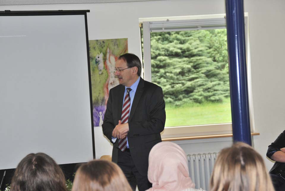 Als Schülersprecher Giovanni Petroccia am Ende dem Landrat ein Geschichtenbuch als Geschenk übergab, erklärte dieser, dass er sich Zeit nehmen würde, um dieses besondere Geschenk zu lesen.