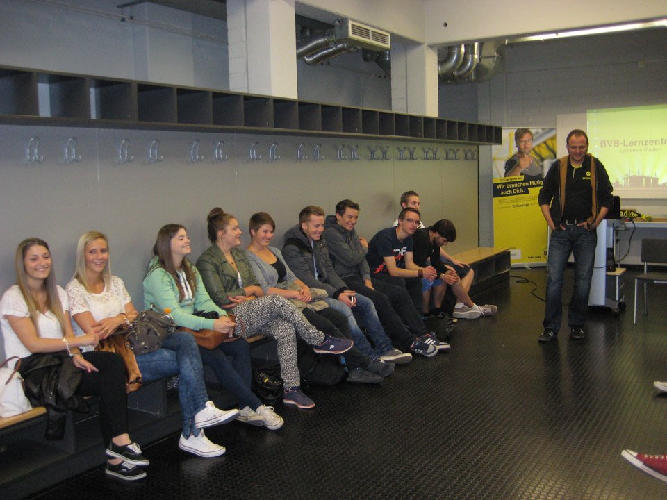 Danach gab es eine Stadionführung, wobei sie Gelegenheit hatten, Orte des Stadions kennenzulernen, die dem normalen Besucher in der Regel verschlossen bleiben, unter anderem die Spielerkabinen, die Trainerbänke und die VIP-Logen. Abschließen besuchten sie das Vereinsmuseum „Borusseum“.