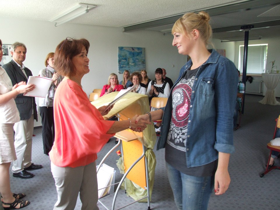 Sie erhielten im Anschluss Urkunden aus der Hand von Bildungsgangleiterin Daniela Hölscher sowie Blumen von den Lehrerkräften Barbara Hermann, Stephanie Diedrich und Gerd Mengelkamp.