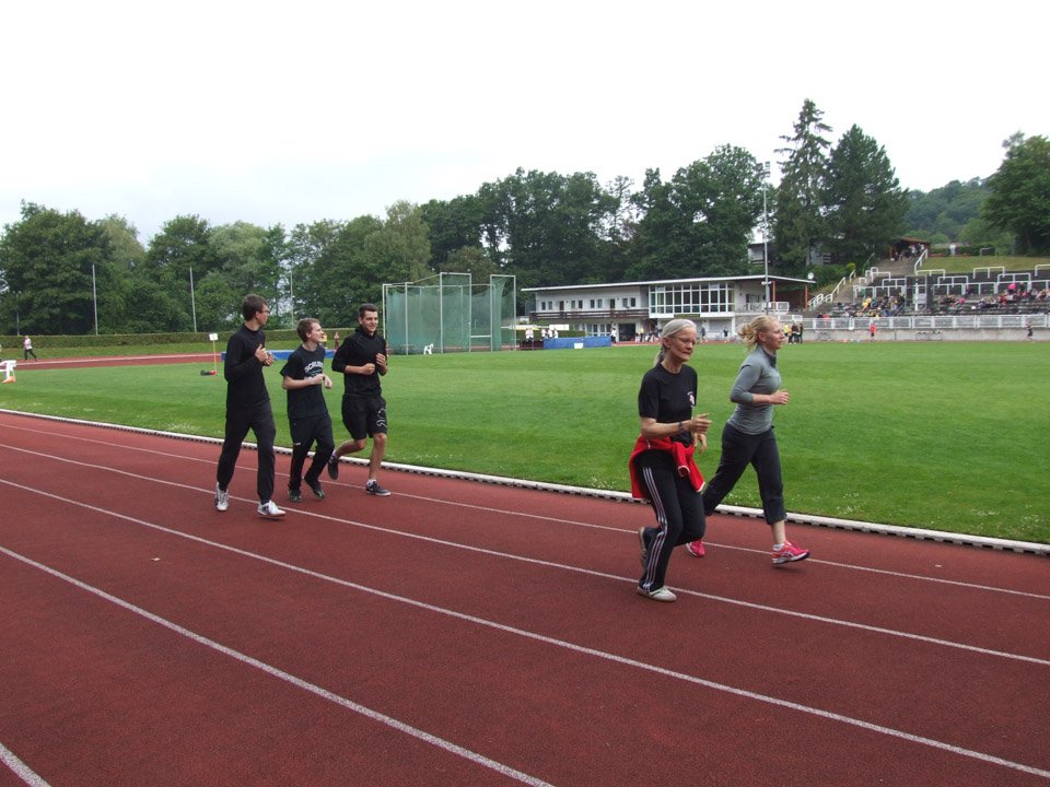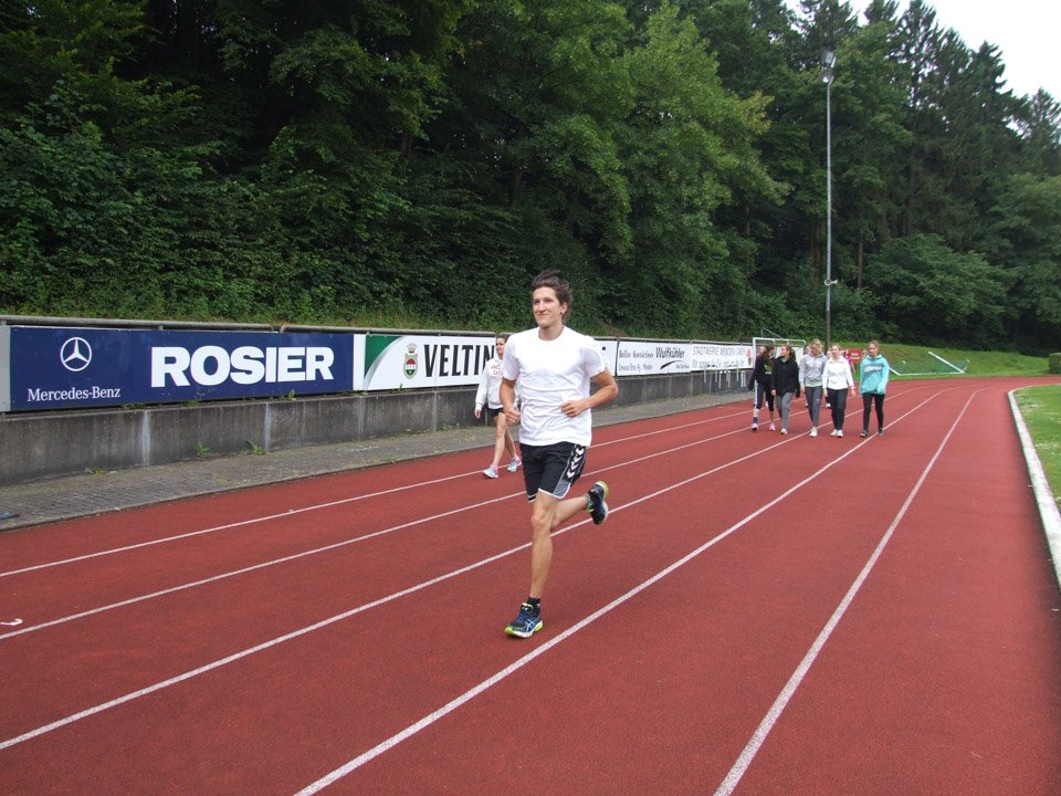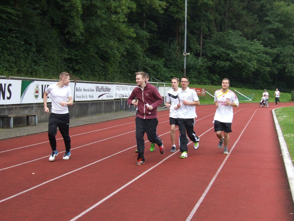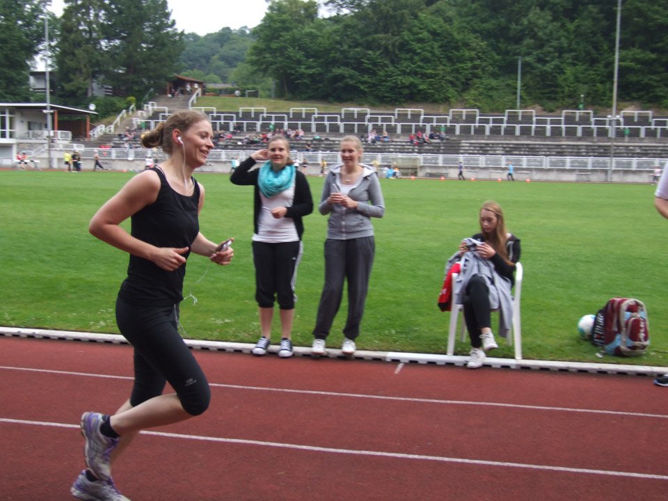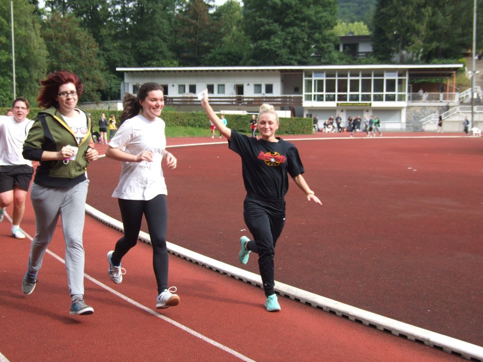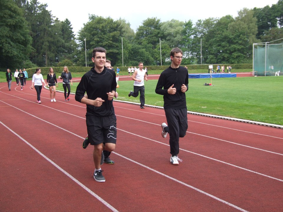 Bei dem plötzlich einsetzenden Regen hielten viele „Placida“-Sportler tapfer durch, völlig durchnässt liefen sie bis zum Schluss. Die meisten Runden lief Lukas Pogorzalski (AHR 12a), er umrundete das Stadion 25 Mal. Klassenkamerad Michael Jarkov (AHR 12a) steigerte seine Bestleistung vom letzten Jahr auf 24 Runden und zog so mit Vorjahressiegerin, Sportlehrerin Inga Gerlings, mit 24 Runden gleich.