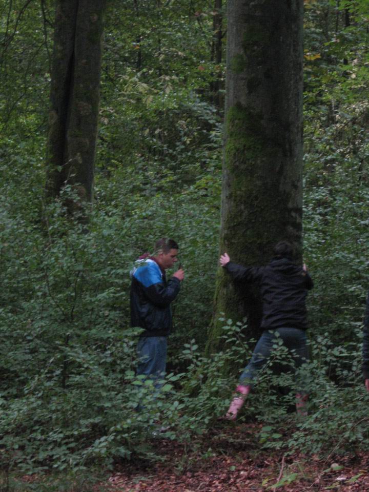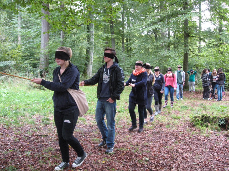 Als Vertrauensübung wurde das Spiel „Blinde Schlange“ gespielt. Das Spiel „Einen Baum ertasten“ ist ebenfalls eine Vertrauensübung, dient aber auch zur Förderung der Sinneswahrnehmung. Es wurden im Verlauf des Vormittags noch weitere Spiele durchgeführt. Den Abschluss bildete das klassische „Verstecken spielen“, das vielen Schülerinnen und Schülern insgesamt sogar am Besten gefallen hat.