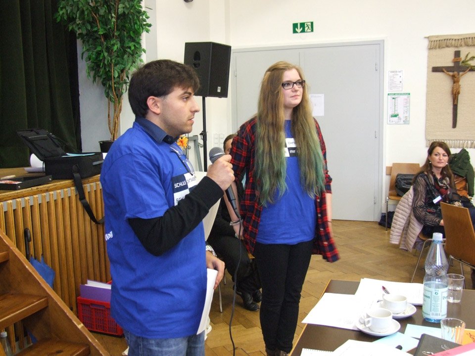 PVBK-Schulleiterin Gaby Petry und Walburgis-Schulleiterin Schwester Maria Thoma Dikow hießen die Gäste herzlich willkommen, Bianca Hoffmann (AHR 13) begrüßte als SV-Vertreterin. Dann stellten sich die einzelnen Schülervertretungen kurz vor – sie kamen aus dem ganzen Erzbistum, aus Hagen, Dortmund, Paderborn, Lippstadt, Hamm, Werl und anderen Orten.