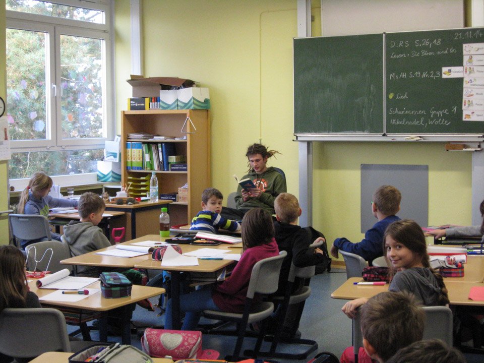 In den zwölf Klassen der Grundschule lauschten die jungen Zuhörer den spannenden Geschichten, die ihnen die angehenden Kinderpflegerinnen und Kinderpfleger vorlasen. So hatten die Kinderpfleger zum Beispiel Geschichten vom kleinen Nick, von Michel aus Lönneberga und von Jeremy James ausgewählt.