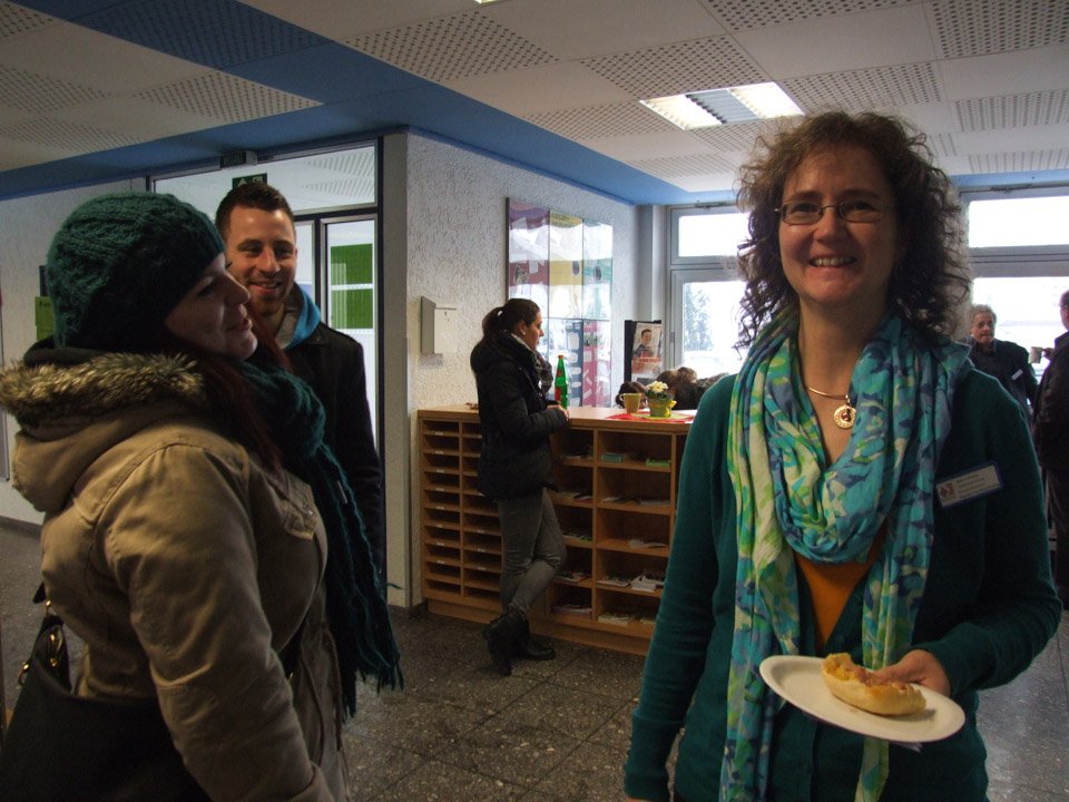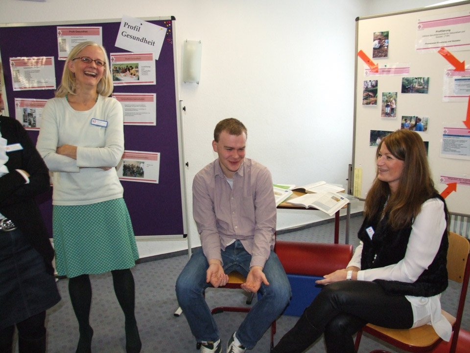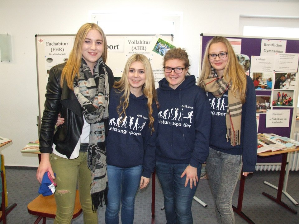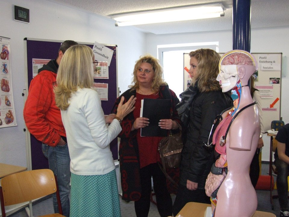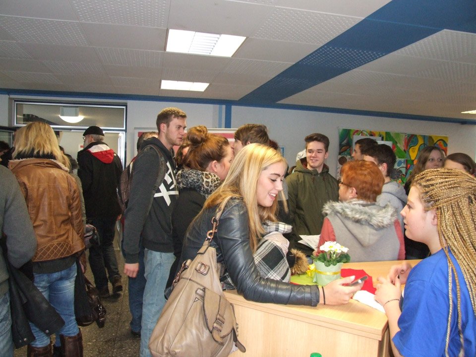 Leonie Wright war erstaunt, wie sehr sich ihre alte Schule verändert hat. Mit 500 Schülern gibt es nun nahezu doppelt so viele Schüler wie zu ihrer Zeit, das Bildungsangebot ist ebenfalls stark gewachsen. Bei der Ausbildung zu Kinderpflegern oder Sozialassistenten kann man seine Fachoberschulreife machen, als angehender Heilerziehungspfleger sein Fachabitur. Aber auch die zweijährige Höhere Berufsfachschule führt zum Fachabitur, daneben kann man am Beruflichen Gymnasium sein Vollabitur machen. Über all diese Bildungsgänge und die verschiedenen Profile wie Sport, Gesundheit oder Erziehung und Soziales informierte die Schule an diesem Tag die zukünftigen Schüler, die zahlreich erschienen waren. Mit Vertretern der SV besichtigten sie die Räumlichkeiten, informierten sich bei Lehrern an Beratungsständen. Viele von ihnen bewarben sich direkt für das Schuljahr 2015/2016.