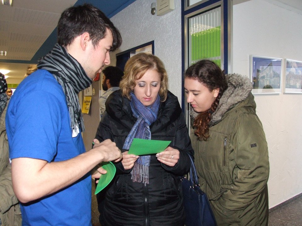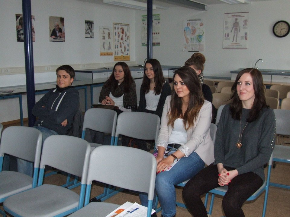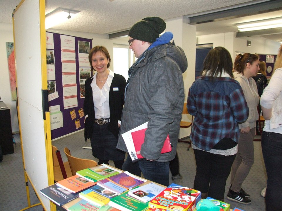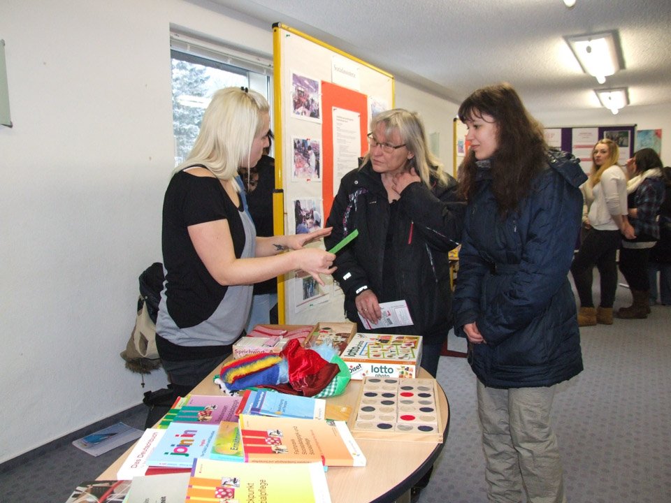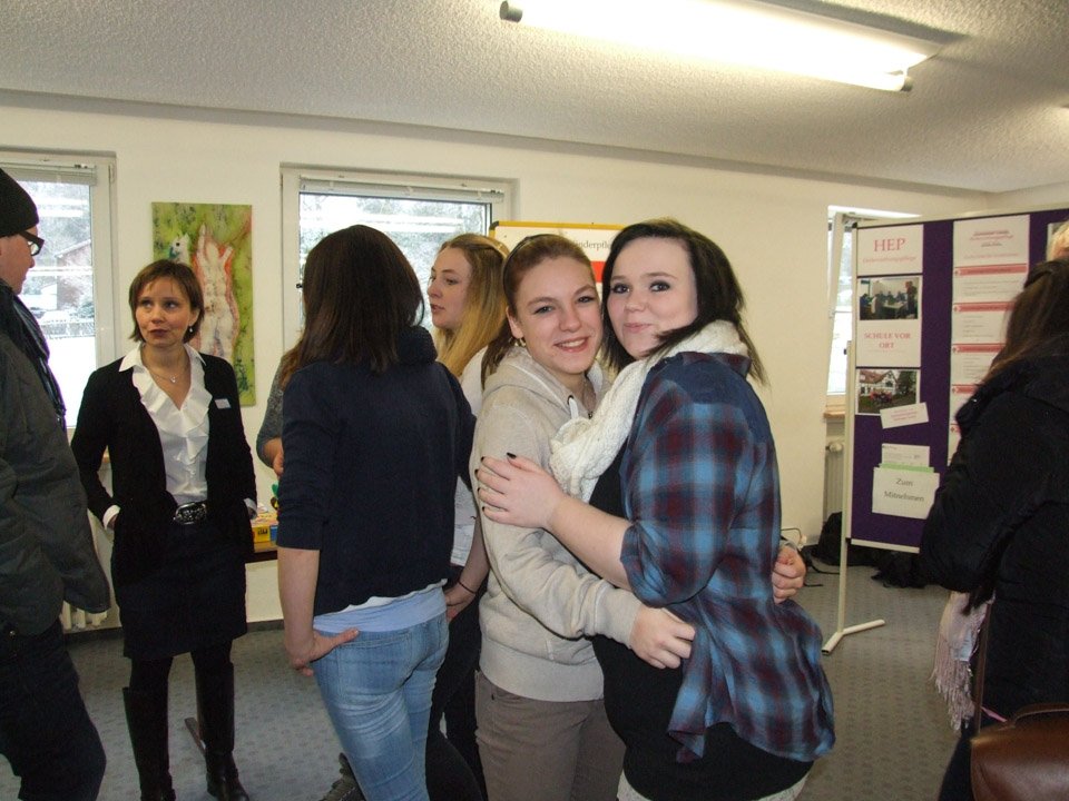 Leonie Wright war erstaunt, wie sehr sich ihre alte Schule verändert hat. Mit 500 Schülern gibt es nun nahezu doppelt so viele Schüler wie zu ihrer Zeit, das Bildungsangebot ist ebenfalls stark gewachsen. Bei der Ausbildung zu Kinderpflegern oder Sozialassistenten kann man seine Fachoberschulreife machen, als angehender Heilerziehungspfleger sein Fachabitur. Aber auch die zweijährige Höhere Berufsfachschule führt zum Fachabitur, daneben kann man am Beruflichen Gymnasium sein Vollabitur machen. Über all diese Bildungsgänge und die verschiedenen Profile wie Sport, Gesundheit oder Erziehung und Soziales informierte die Schule an diesem Tag die zukünftigen Schüler, die zahlreich erschienen waren. Mit Vertretern der SV besichtigten sie die Räumlichkeiten, informierten sich bei Lehrern an Beratungsständen. Viele von ihnen bewarben sich direkt für das Schuljahr 2015/2016.