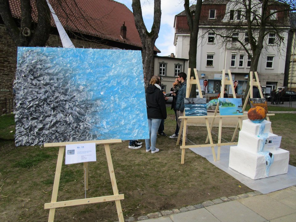 Der Wettbewerb stand unter dem Thema „Alles im Fluss“. Mit Hilfe ihrer Kunstlehrerin Brigitte Mühlenkamp hatten sie sich lange Gedanken gemacht. Am Ende schuf jede der beiden Klassen einige Kunstwerke, die die Jury beim großen Stadtfest auszeichnungswert fand.