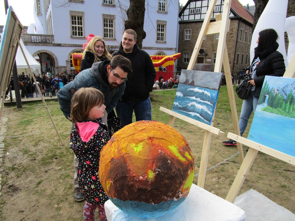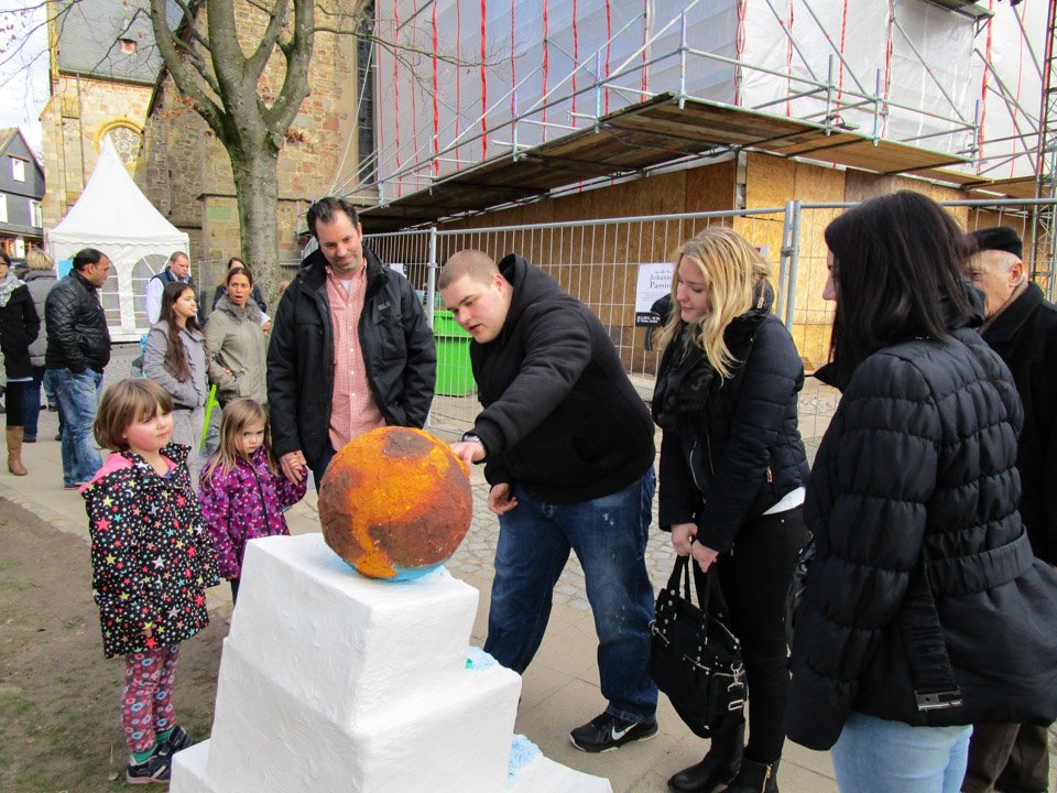 Den ganzen Sonntag lang stellten die Schüler, eingeteilt in Schichten, mit Brigitte Mühlenkamp auf dem Kirchplatz ihre Werke vor, waren aufgeregt, als die Jury und Journalisten vorbeikamen. Am Ende gewannen sie 100 Euro, die in ihre Klassenkassen fließen.