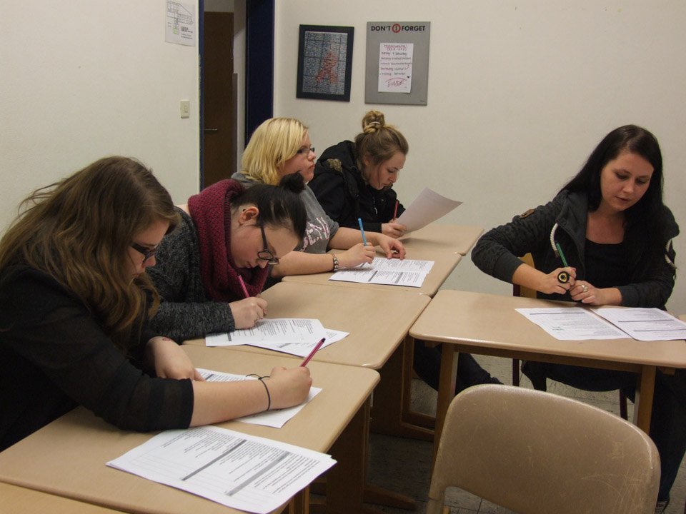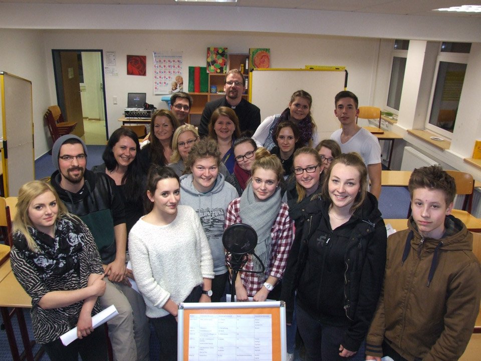 Zum ersten Mal überhaupt übernimmt eine Schule die textliche Gestaltung der kirchlichen Veranstaltung. Deshalb gaben sich die 20 jungen Leute, die sich freiwillig bei den Religionslehrerinnen Dorothea Pietrzak, Anne Junker und Kathrin Kreuzkamp sowie Schulsozialarbeiterin Irina Rebbe gemeldet hatten, besonders viel Mühe. 14 Stunden lang in der Schule – kein Problem für sie. Sie blieben am Freitag bis abends spät im Placida-Viel-Berufskolleg, um nach dem Unterricht (und in einigen Fällen nach dem Nachschreibtermin) noch die Tonaufnahmen zu machen.
