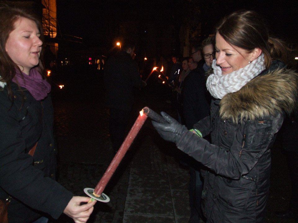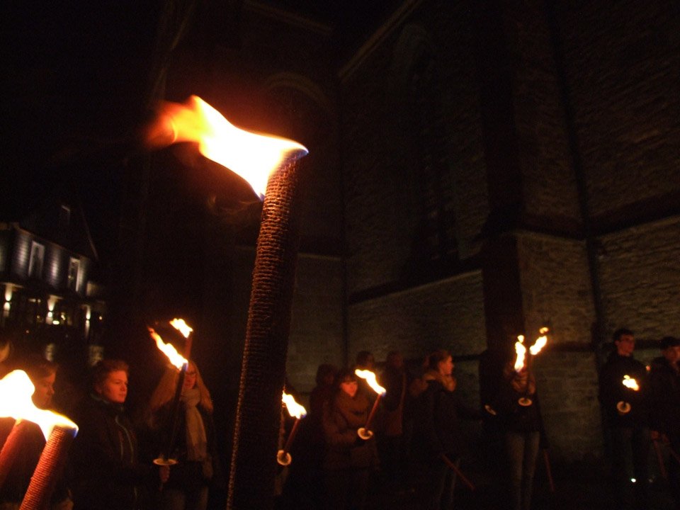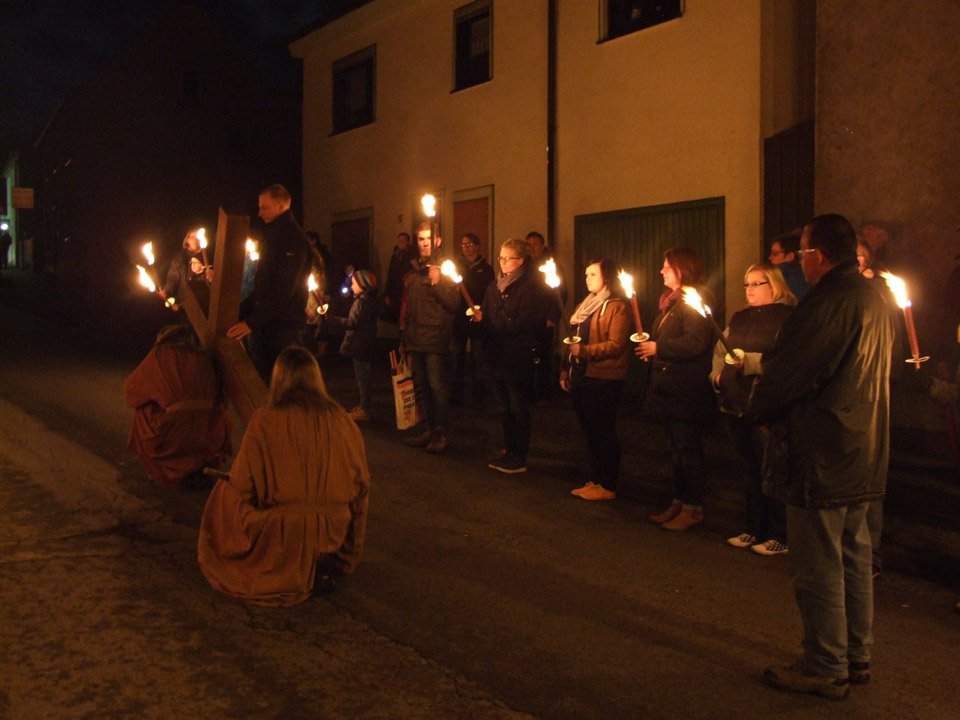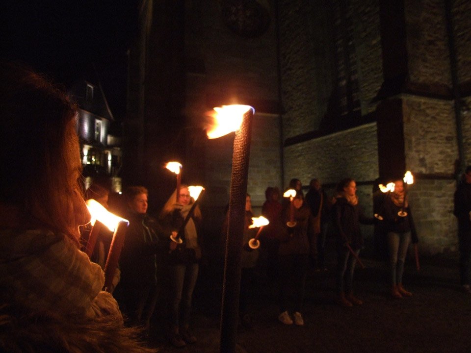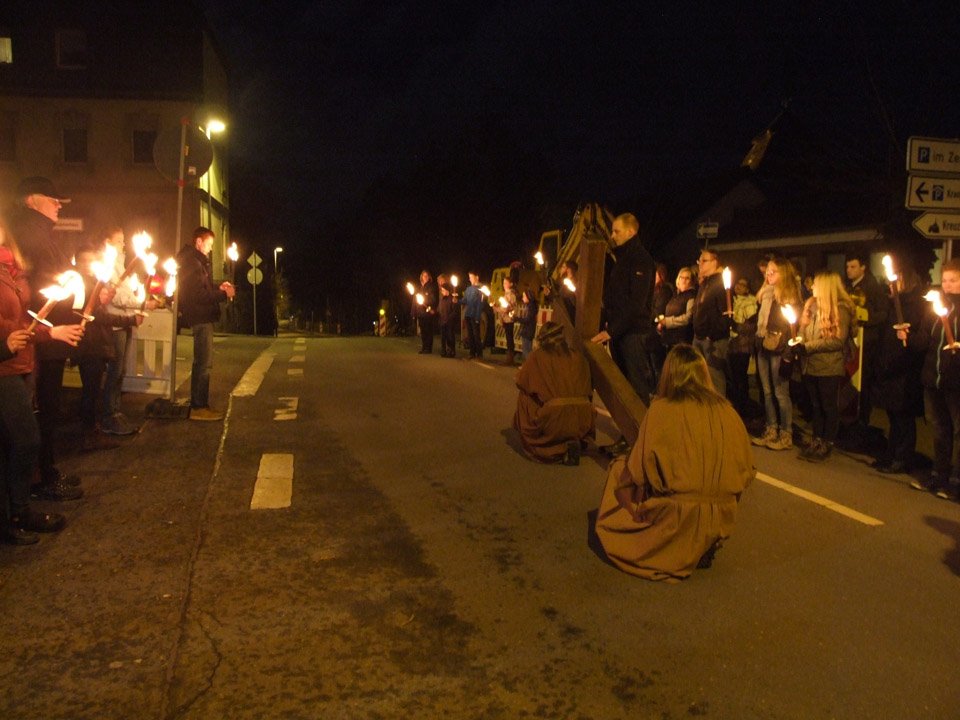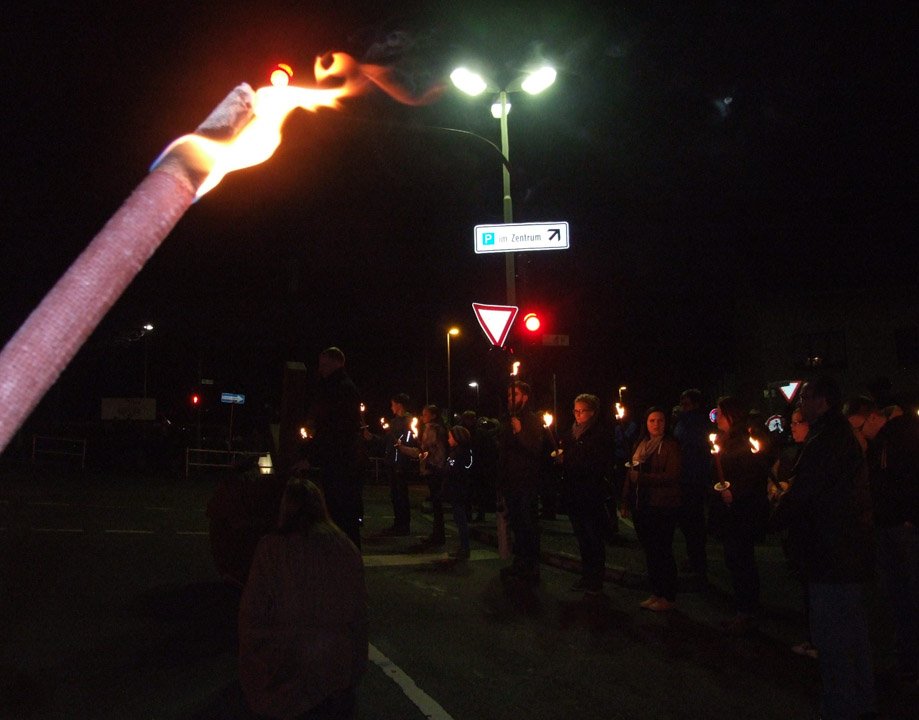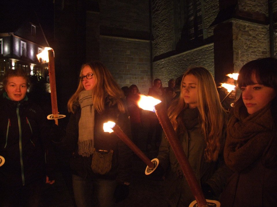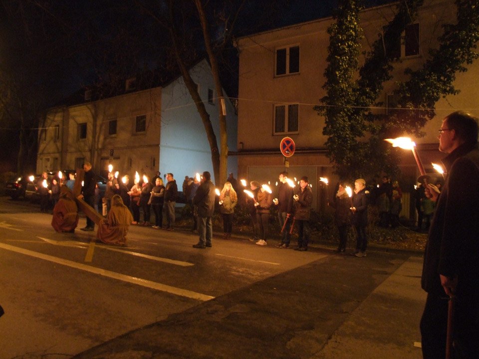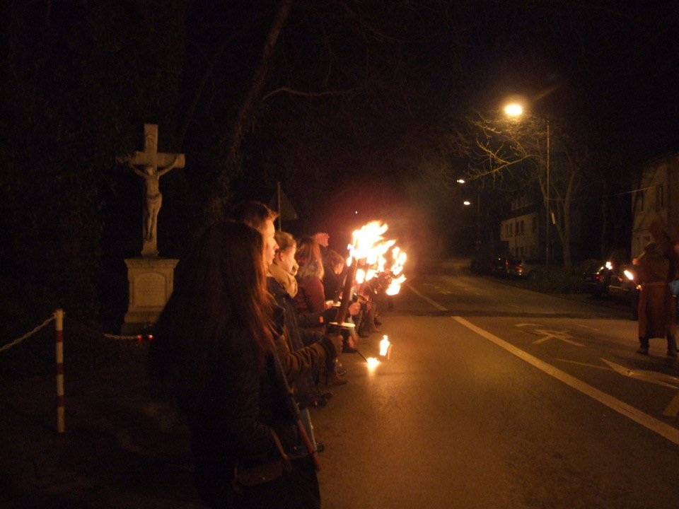 „Stimmungsvoll“ war das Wort, das Schulleiterin Gaby Petry am Ende fand. Mehr als einer Stunde lang war sie den beiden Kreuzträgern und den Fackelträgern, zu denen auch Lehrer und Schüler ihrer Schule gehörten, durchs abendliche, unglaublich stille Menden gefolgt.