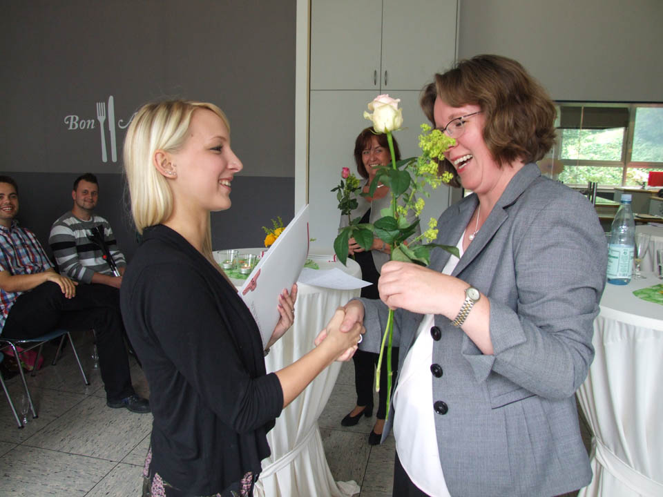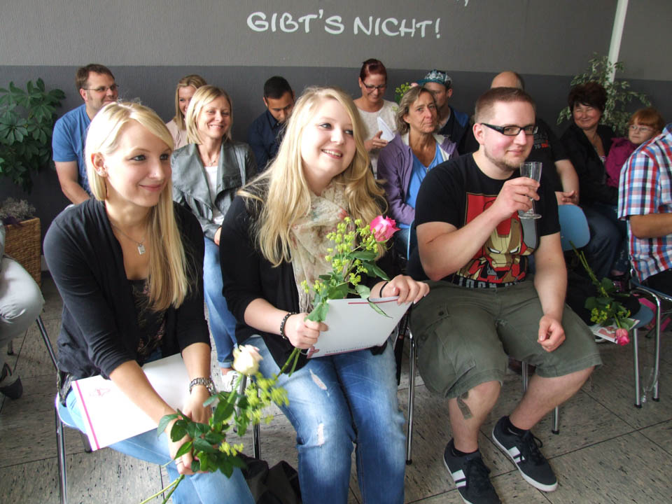 Am Dienstag nahmen Nadine Brenscheidt, Natascha Butzek, Sarah Bülow, Oliver Greunke, Jan-Niklas Gutberlet, Markus Kiczka, Ann Christin Richarz und Tamy Viebahn aus den Händen von Stephanie Diedrich ihre Abschlusszeugnisse in Empfang, die Bertreuungslehrerinnen Daniela Hölscher und Barbara Hermann überreichten Rosen. Schulleiterin Gaby Petry und ihre Stellvertreterin Kerstin Kocura gratulierten ebenfalls herzlich und wünschten alles Gute für die Zukunft.