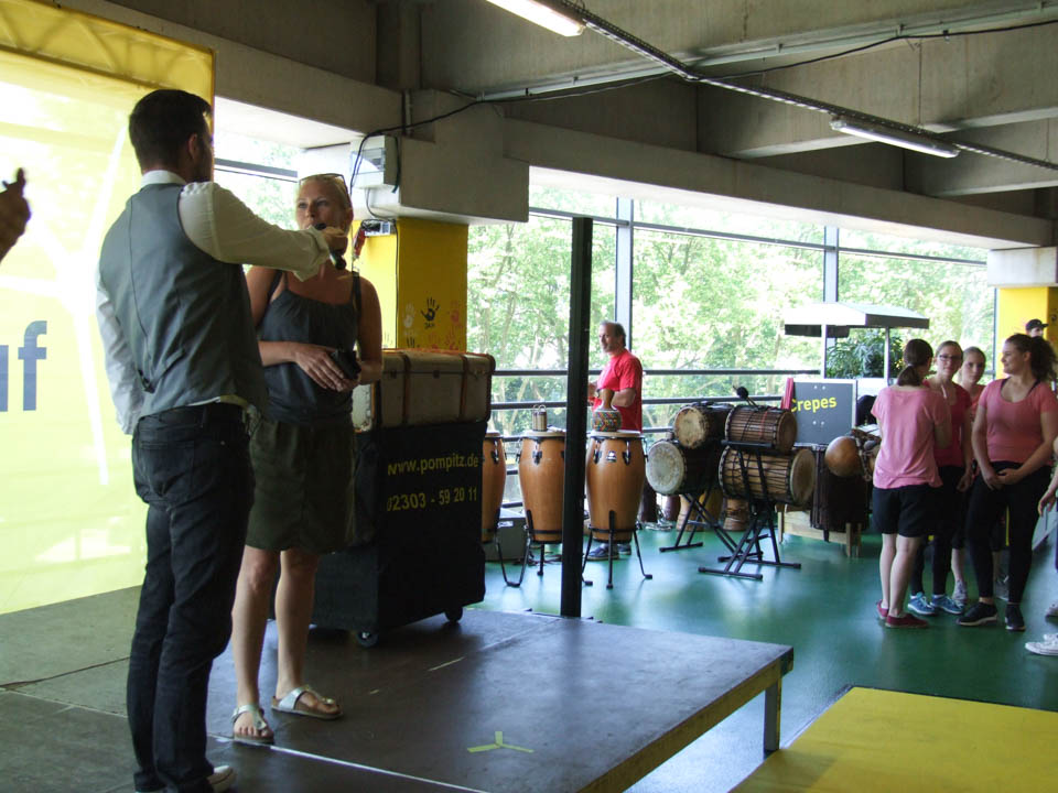 Tanzen, helfen, betreuen, gucken, sich austauschen: Die Sport-Profilklasse AHR 11c war am Sonntag beim interkulturellen Fest „Ein Ball – eine Welt“ des BVB-Lernzentrums dabei.
