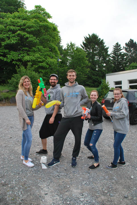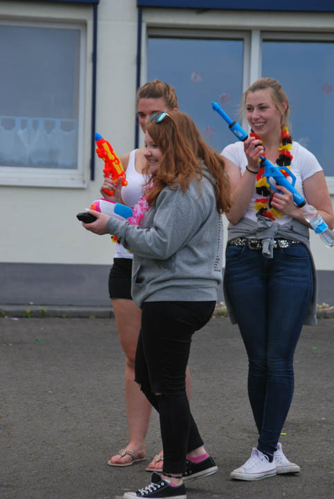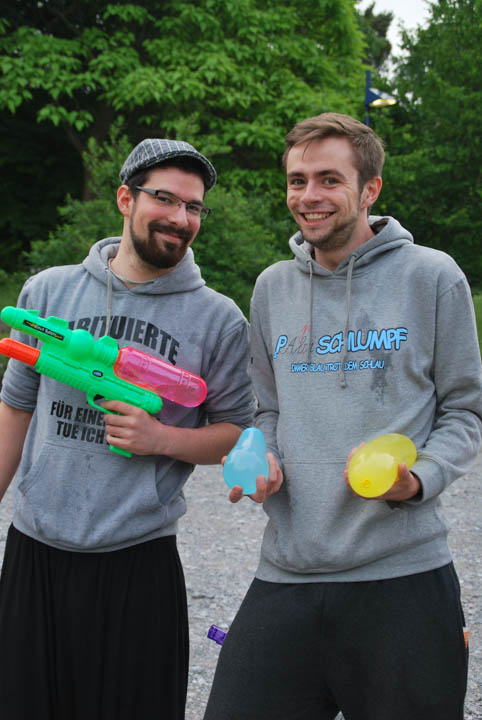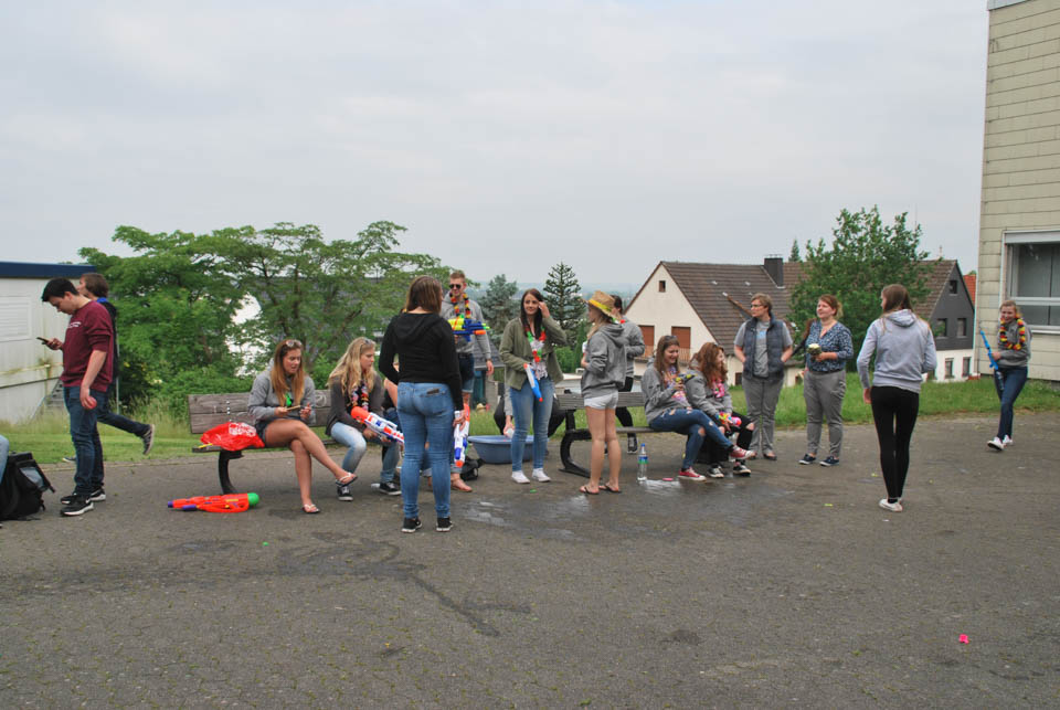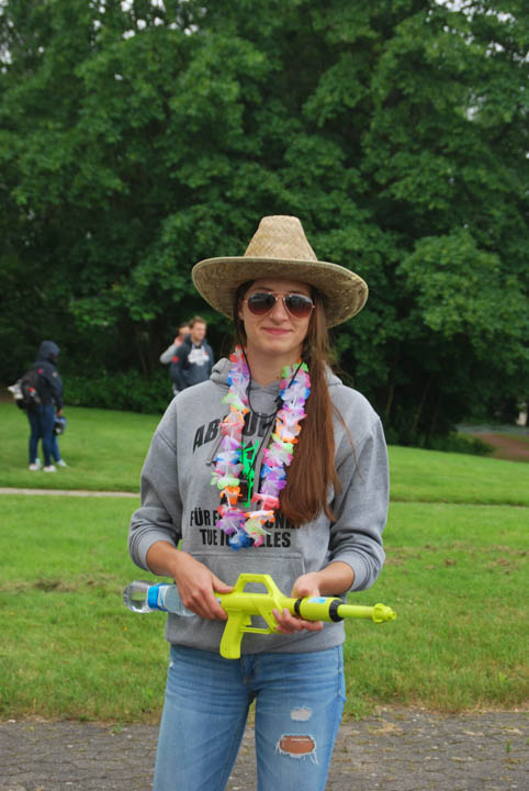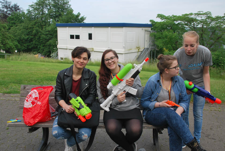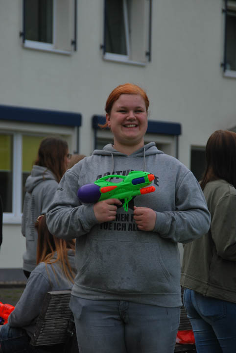 Besagte Wasserpistolen scheinen – so die einhellige Meinung der Lehrerschaft – jedes Jahr größer zu werden. Und irgendwann reichte es dann auch Lehrer Gerd Mengelkamp – er schnappte sich eine Wasserbombe und schoss zurück, bejubelt von der Menge auf dem Schulhof.
