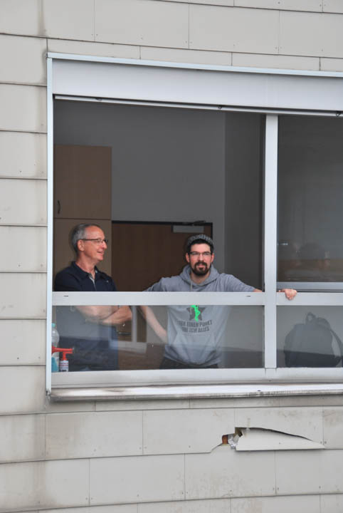 Dieser war zugleich Abi- und Fachabi-Sturm, die Schülerinnen und Schüler der Abschlussklassen hatten sich viel einfallen lassen, um am Donnerstag den Zugang zur Schule zumndest zu verzögern. Die Türen zum Schulgebäude waren abgeschlossen, einzig der Haustechniker war drinnen zu sehen – ein Schelm, wer Böses dabei denkt. Absperrbänder behinderten weiteren Zutritt, daneben standen Wachen mit Wasserpistolen und „Wasserbomben“.