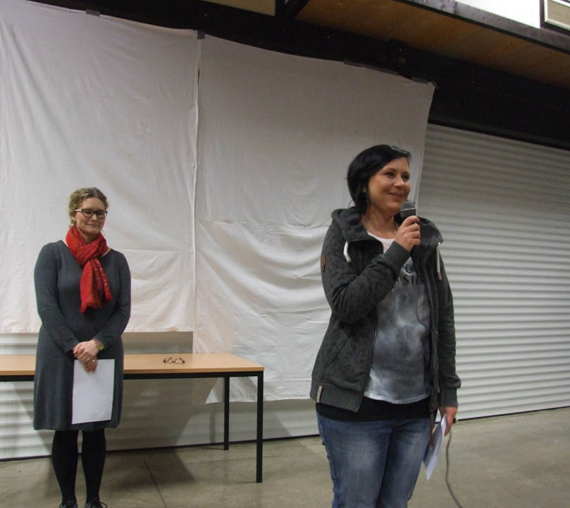 Schulsozialarbeiterin Irina Rebbe schlug dann auch den Bogen von den Geschehnissen vor fast 80 Jahren zu heute. „Wie konnte das damals passieren? ist eine immer wieder gestellte Frage. Und wieso ist Populismus so gefährlich? Angst lautet, so Irina Rebbe, das Stichwort. Damals wie heute wurde bei den Menschen gezielt Angst geschürt. Und: diese „Angst hat noch nie zu etwas Gutem geführt“.