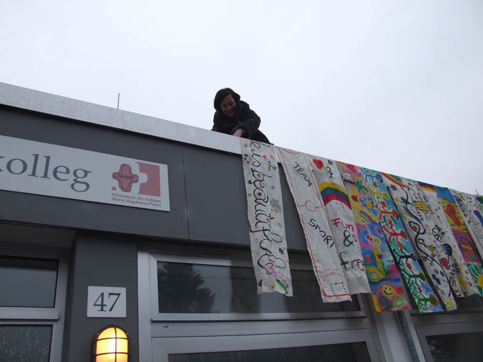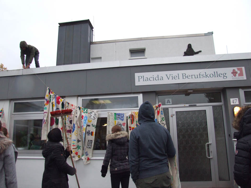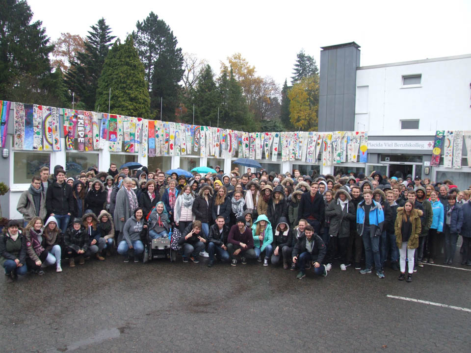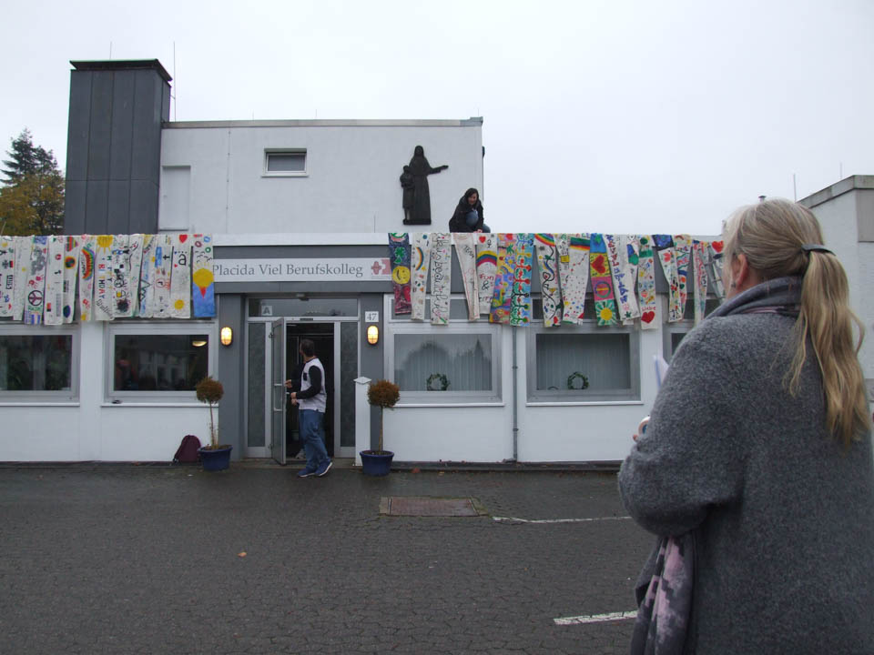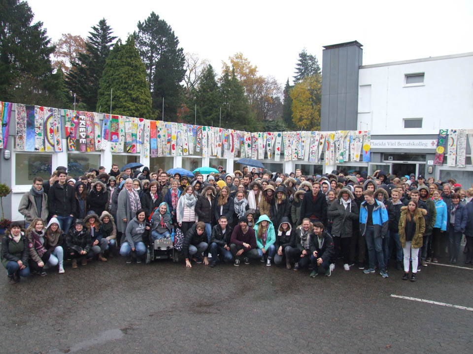 Als auch äußeres Zeichen, dass das „Placida“ eine Schule ohne Rassismus ist, wurden die Fahnen an der Außenfassade des Berufskollegs weithin sichtbar aufgehängt. Sie erinnern eine hoffentlich lange Zeit an das Positive im Leben.