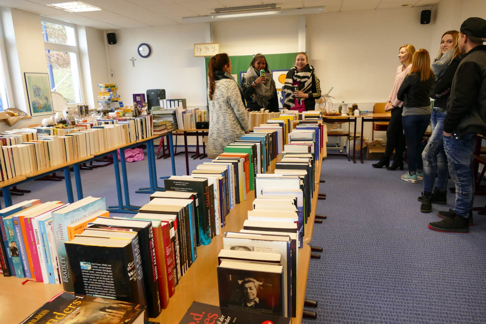 Wer die Infos erst einmal verarbeiten musste, konnte sich vom gesunden Speisenangebot verführen lassen oder einen Einkaufsbummel für den guten Zweck machen: Die FHR 11a und die Kinderpfleger-Oberstufe veranstalteten Trödelmärkte zugunsten des „Schüler helfen Schülern“-Fonds. Wie so viele andere Schüler zuvor hatten sich auch die angehenden Kinderpfleger einmal am „Placida“ bewerben müssen. Diese Möglichkeit hatten die Besucher des StuBo-Tages ebenso und nahmen sie auch wahr. So wurden zahlreiche Bewerbungsgespräche geführt.