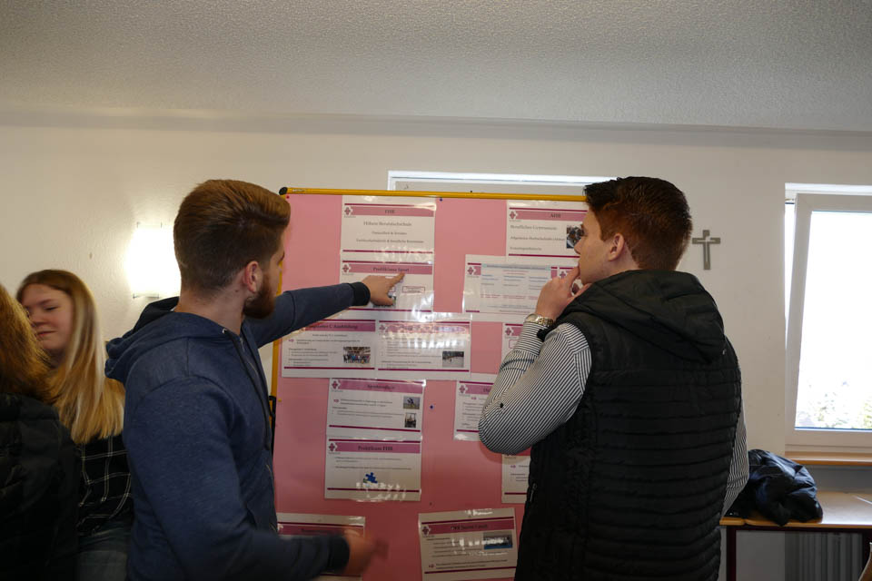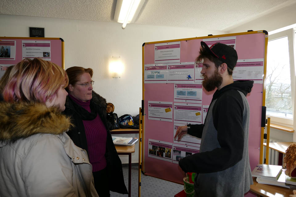 Wer an diesem Tag zum ersten Mal das Schulgebäude betrat, konnte sich durch Schulführungen (von SV-Schülern), Vorträge (von den Abteilungsleitern) und Info-Stände (betreut von Lehrern und Schülern) ein genaues Bild von dem Bildungsangebot machen: Egal, ob Erzieher, Heilerziehungspfleger, Sozialassistent oder Kinderpfleger, es gibt viele Berufsausbildungen. Zudem können aber auch Schulabschlüsse erworben werden, etwa das Vollabitur (mit den Profilen Gesundheit, Erziehung oder Freizeitsportler) oder das so genannte Fachabitur mit denselben Schwerpunkten.