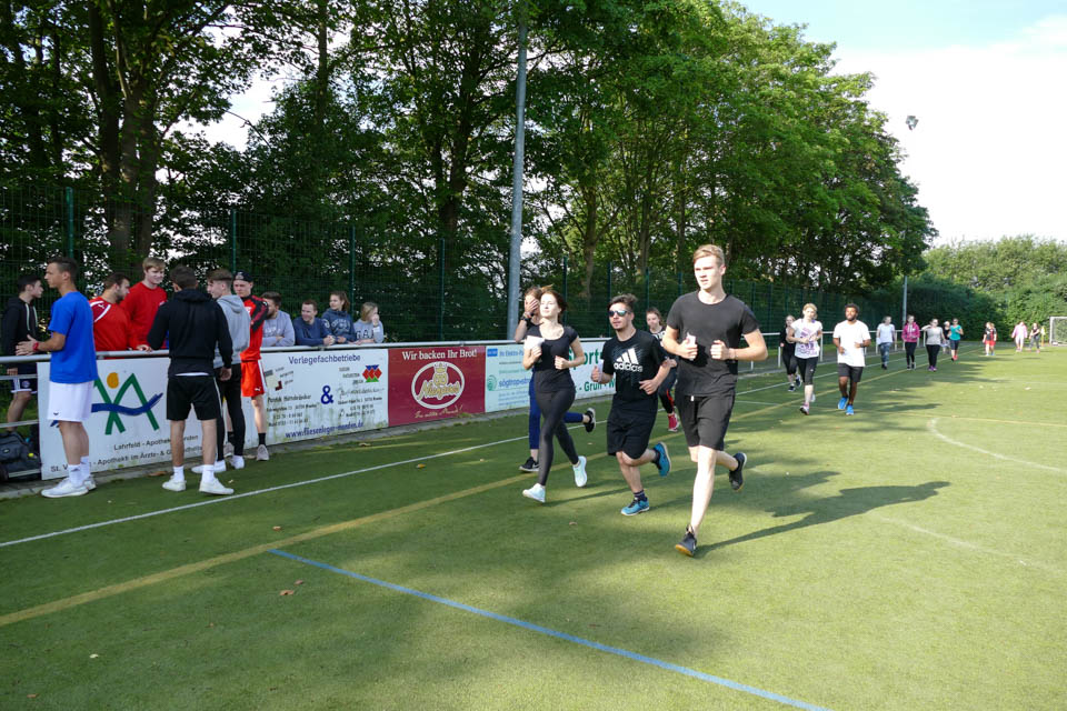 Das Fest soll einem guten Zweck dienen. So begann es mit einem Sponsorenlauf, dessen Erlös der Schülervertretung und dem Schülerfonds zugute kommen wird. Sowohl Schülerinnen und Schüler als auch Lehrkräfte nahmen teil und zogen über eine halbe Stunde lang ihre Runden um den Sportplatz. Während die einen es motiviert als Workout und bewegten Start in den Tag sahen, nahmen andere den Lauf wiederum als kleinen Spaziergang und zogen gemächlich ihre Runden über den Kunstrasen.