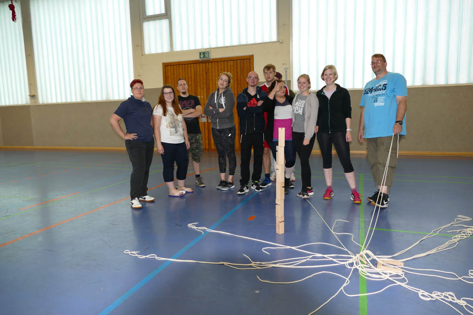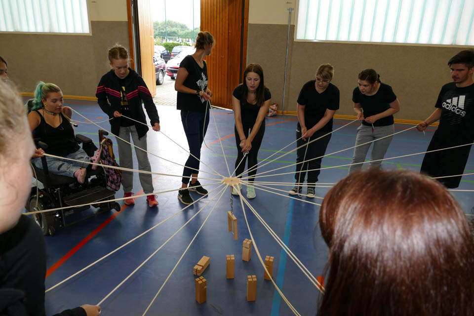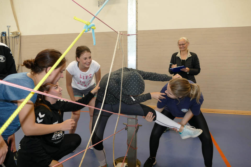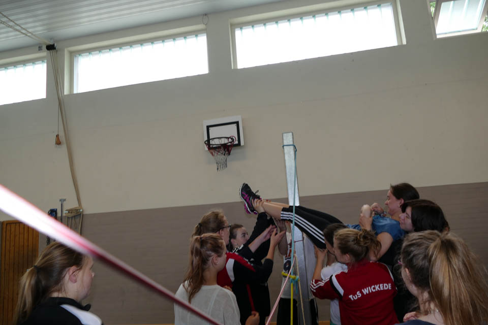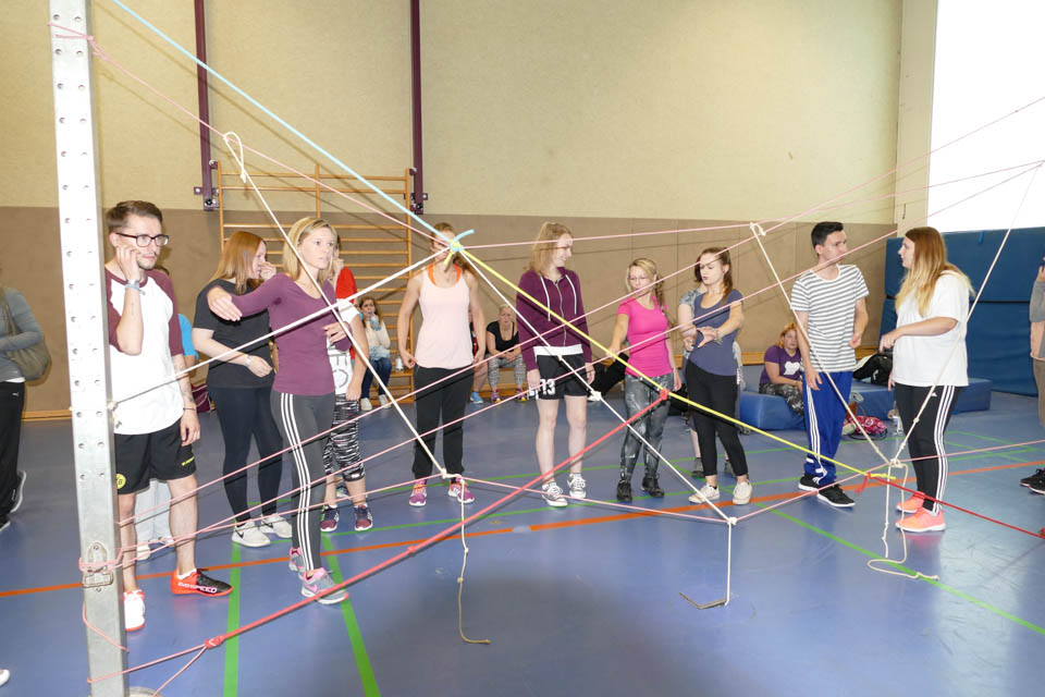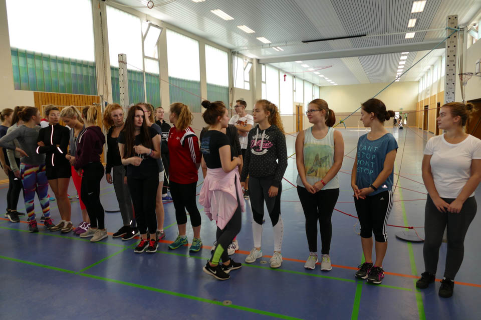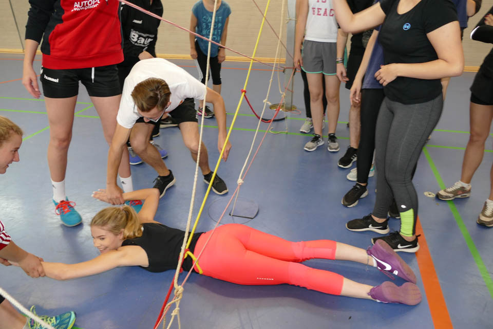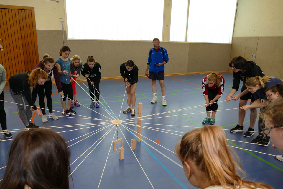 Anschließend wetteiferten die Klassen in verschiedenen Disziplinen: An zehn verschiedenen Stationen hieß es gemeinsam als Klasse die Aufgaben zu meistern und die Stärken eines jeden nutzen, denn beim Tennisballtransport mit Handtüchern, dem Murmelspiel oder dem Spinnennetz waren Geschick und Kommunikationsfähigkeit von Nöten. Beim Scrabble hingegen hieß es schnell sein, denn in sechs Minuten mussten so viele Buchstaben wie möglich eingesammelt werden, um dann anschließend innerhalb von zwei Minuten so viele Wörter wie möglich zu legen. Und das war gar nicht so einfach, denn die Klassengruppen schafften es so viele Buchstaben zu holen, dass sie im Schnitt fünf Wörter legen konnten.