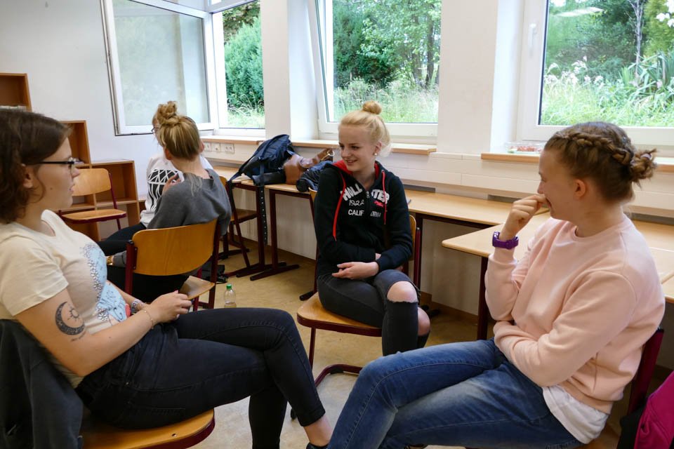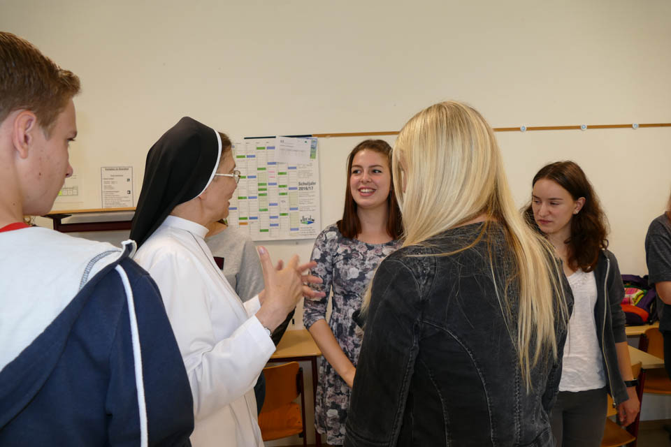 Klassenkamerad Nico Przibylla lernte bei Schwester Theresita Maria Müller vom Schulträger SMMP einiges über Körpersprache, Gestik und Mimik. „Vieles kann ich im Alltag gebrauchen, zum Beispiel um Leute besser einschätzen zu können und Konflikte zu vermeiden.“