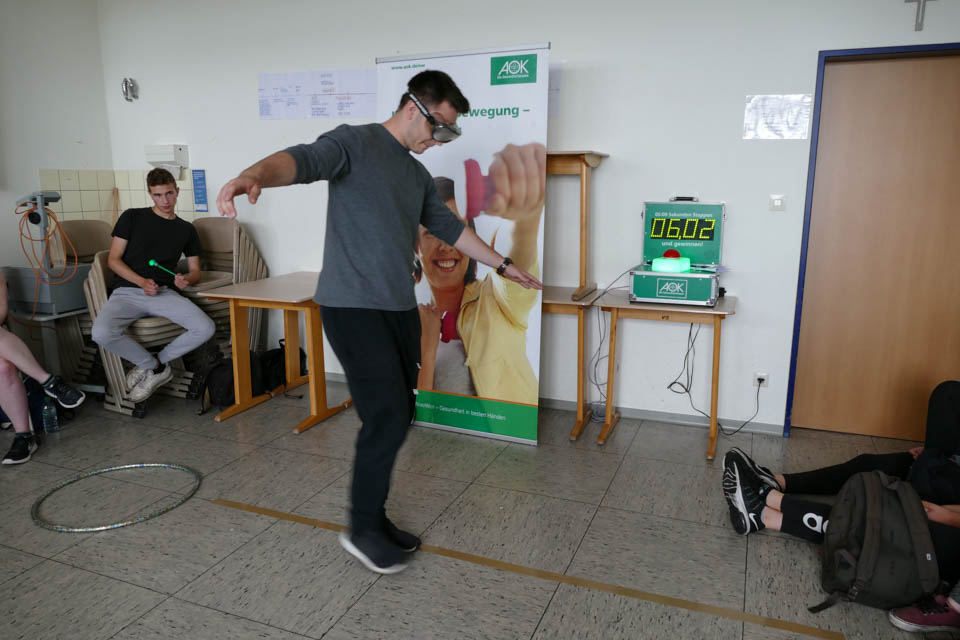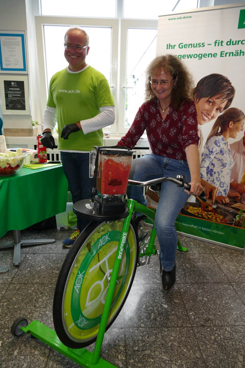 Bei Vertretern der AOK konnten Schüler zudem einen Rausch-Parcours absolvieren (wie sind Sicht und Reaktion bei wieviel Promille Alkohol eingeschränkt) und mit einem umgebauten Fahrrad selber Smoothies herstellen.