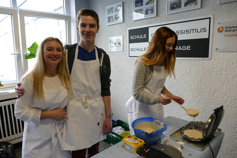 Doch alljährlich sind auch viele Ehemalige dabei. Sie schauen, wie sich ihre Schule verändert hat, plaudern mit ehemaligen Lehrern oder verabreden sich mit Klassenkameraden. So wie Charlotte Binder und Johanna Ulrich, die beide 2016 Abitur gemacht hatten. Charlotte war es ein Bedürfnis, ihrem ehemaligen Biolehrer Dr. Martin Meise zu sagen, wie dankbar sie ihm ist, dass er sie im Leistungskurs so gut auf ihr Pharmazie-Studium vorbereitet hat.