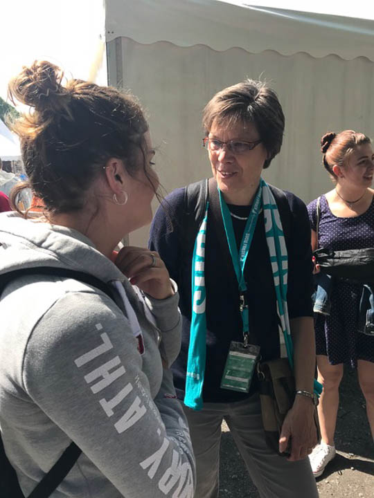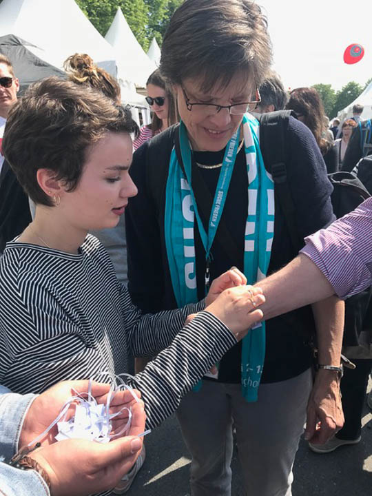 Dieser Tag der Begegnung wird allen noch lange in Erinnerung bleiben. – „Ich bin noch nie so häufig von Fremden angelächelt worden“, beschreibt Irina Rebbe die Stimmung des Kirchentages. Aber auch das Miteinander mit den Schwestern, die vor Ort waren, und weiteren Lehrkräften des Kollegiums trugen zu dieser besonderen, familiären Atmosphäre bei. Anschließend sahen sich Lehrkräfte und die Schülerinnen und Schüler auf dem Kirchentag um. Gaby Petry spendierte noch Eis für alle, dann fuhren alle erfüllt von intensiven Momenten und Eindrücken mit dem Zug wieder Richtung Menden.