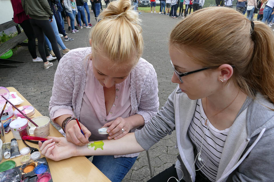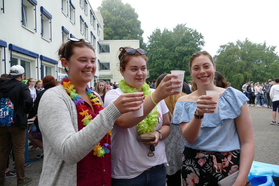 Und so traf sich die „Placida“-Schulgemeinde zeitig am Morgen des letzten Schultages auf dem Schulhof. Die Schülervertretung, die das Fest nun bereits zum fünften Mal organisierte, hatte das Aloha-Programm dementsprechend etwas abwandeln müssen.