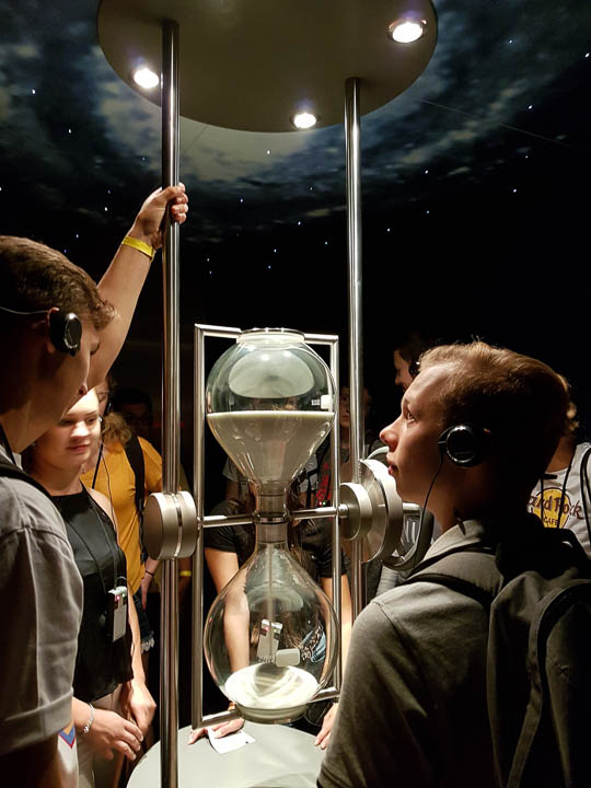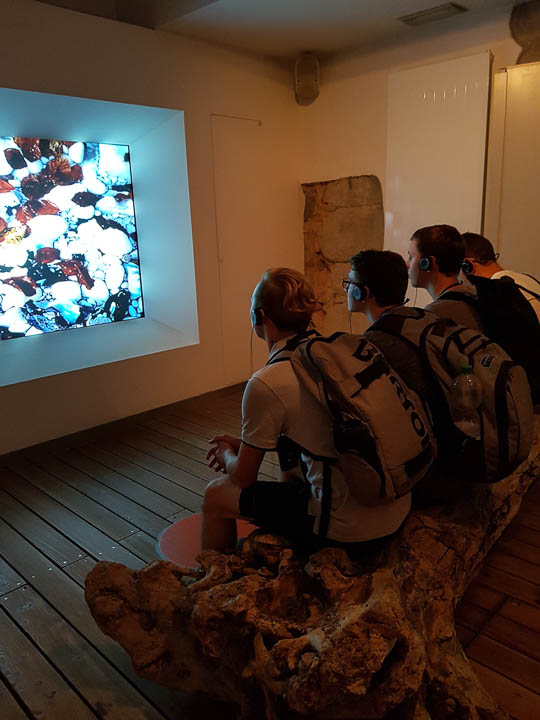 Nachmittags und abends sorgten weitere verpflichtende oder freiwillige Angebote für Abwechslung, etwa eine Fahrt zum Nationalpark-Zentrum Königsstuhl, wo die besten Selfies mit den Kreidefelsen als Hintergrund geschossen werden konnten. Doch – für sie selbst sehr überraschend – gefiel den Schülern auch die Erlebnisausstellung im Besucherzentrum außerordentlich gut, wurden hier Geologie und Geschichte doch interaktiv vermittelt. Weitere Höhepunkte der Fahrt waren Besuche in den Seebädern Binz und Sellin, ein Windsurfkurs sowie ein Grillabend mit anschließendem Lagerfeuer.