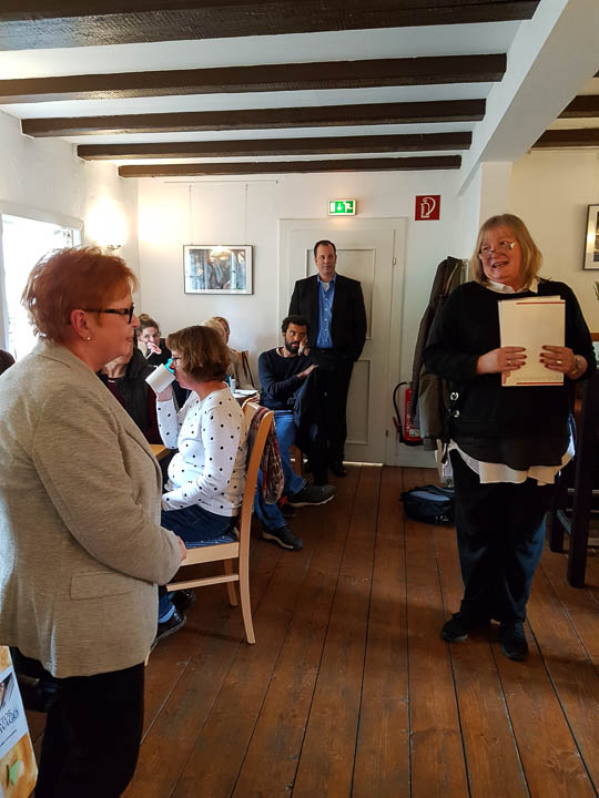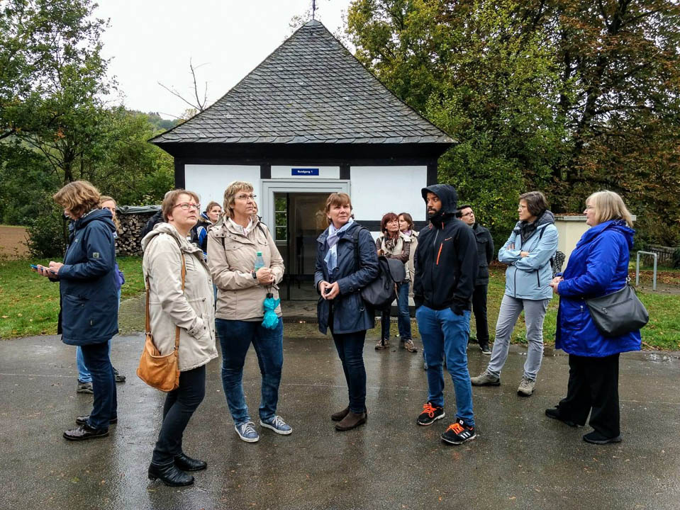 Für die Kollegen war Letzteres auch ein bisschen traurig. Nicht nur, dass Maria Neuhaus im Lehrerzimmer immer für Kugelschreiber gesorgt hatte und den Wandkalender abriss. Nein, bei weitem nicht. Die Tatsache, dass alle Abschied von einer äußerst geschätzten Kollegin nahm, wurde beim Kaffeetrinken beim Lehrerausflug in Balve, den Claudia Schumacher organisiert hatte, deutlich. Nach der Besichtigung der Luisenhütte traf man sich in dem kleinen Cafe, wo Maria Neuhaus zu Kaffee und Kuchen eingeladen hatte. Zunächst boten einige Lehrer einen Rap mit passendem Text, dann auch noch Gedichte. Alles beschrieb den Werdegang der Mendener „Ureinwohnerin“.