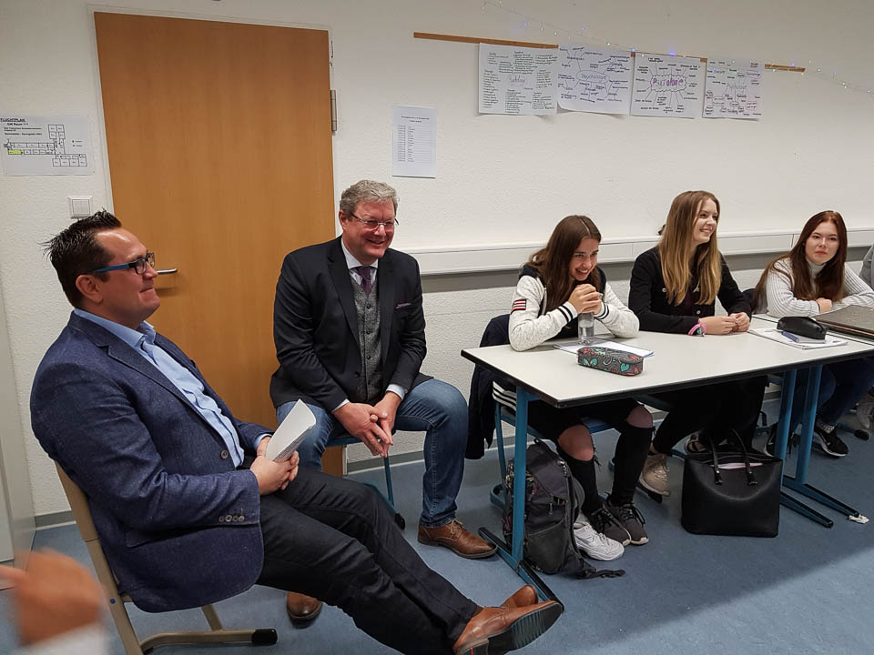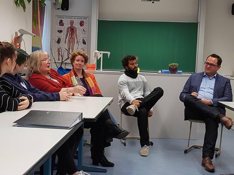 Mit diesem Ansatz kam Marco Voge (CDU), heimisches Mitglied des Düsseldorfer Landtags, jetzt ins „Placida“ und führte intensive Gespräche mit zwei Schulklassen des Beruflichen Gymnasiums und der Höheren Berufsfachschule mit dem Schwerpunkt Gesundheit. Schulleiterin Gaby Petry und SMMP-Schulen-Geschäftsführer Stefan Burk waren auch dabei.
