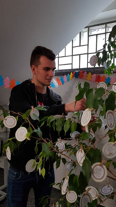 Den Perspektivwechsel vom ICH zum WIR setzen die Schüler und Studierenden dann auch in der Schule kreativ um. Schon Wochen vorher hatten sich die Klassen überlegt, wie sie der Schulgemeinschaft etwas weiter geben können. „Wie Schwester Placida wollen wir für andere da sein“, so Gaby Petry.