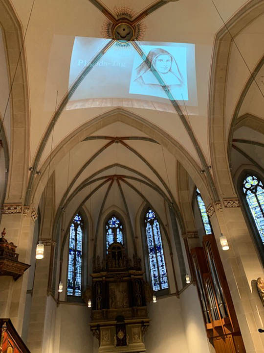 Schwester Placida lächelte dazu vom Deckengewölbe, wohin sie wie jedes Jahr projiziert wurde. Über ihr Leben und Wirken berichtete die Gottesdienst-AG sehr anschaulich. Dazu sang der Chor ebenso berührend wie die Solistinnen Arlene Severing und Lina Casarini.
