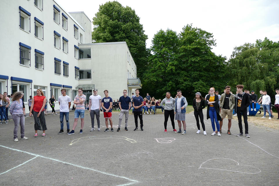 Um 8.40 Uhr stürmten sie dann Klassenräume und Lehrerzimmer und starteten einen bunten Reigen an Spielen auf dem Schulhof. Wer kennt Jugendsprache besser – Lehrer oder Schüler? (Schüler) Wer ist besser beim Sortieren von Buchstabensalat? (Lehrer) Vivienne Vollmert und Selina Spallek moderierten als Klassensprecherinnen der AHR 13b1 und b2 den Spaß und verteilten am Ende Eis und Süßigkeiten an die Gewinner – und die Verlierer.