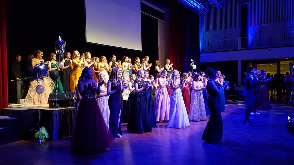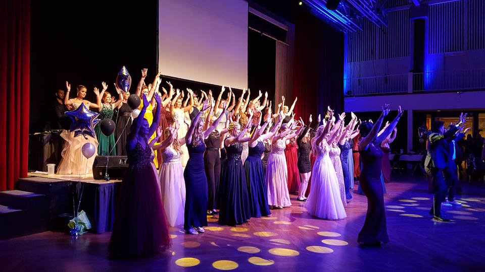 Das Ergebnis: junge Frauen in Abendkleider, die Herren in Anzügen, eine festlich geschmückte Halle, ein gigantisches Büffet, Security, DJ und vieles mehr. Dazu ein charmantes Programm, das sich sehen lassen konnte. Sogar Schulleterin Gaby Petry ließ sich zu dem Statement „Der beste Abiball, den ich jemals erlebt habe!“ hinreißen.