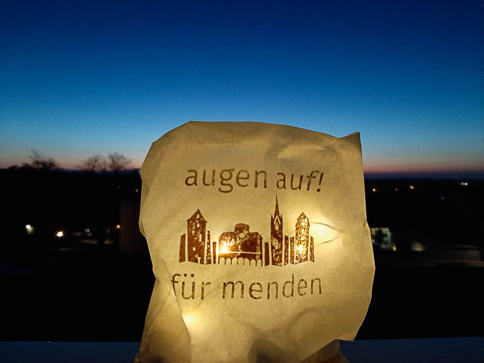 Auf dem Nachhauseweg sah man in vielen Hauseingängen die Lichter leuchten. Bei Facebook und Instgram wurden zahlreiche Fotos der Lichtertüten geteilt. „Mir gefällt der Gedanke, dass wir etwas tun, das viele Menschen mittragen. Und das macht mir Mut. Genau solche Signale sind wichtig, weil wir so viele bedrohliche Botschaften sonst bekommen,“ zeigte sich „Placida“-Schulsozialarbeiterin Irina Rebbe, eine der Hauptinitiatorinnen von „Augen auf“, sehr begeistert.